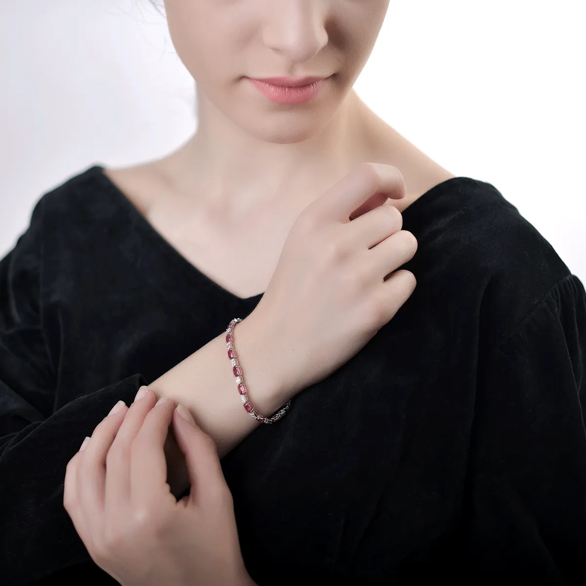 Bratara tennis din aur alb cu rubine ovale de 8.57ct si diamante de 1ct