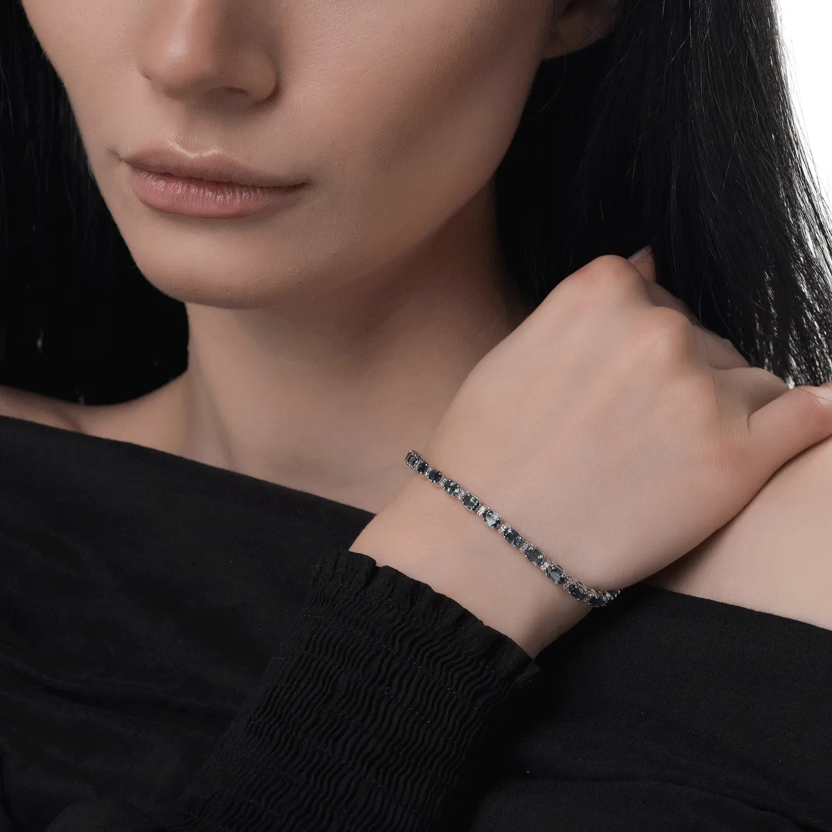 Bratara tennis din aur alb cu safire ovale de 8.07ct si diamante de 0.26ct