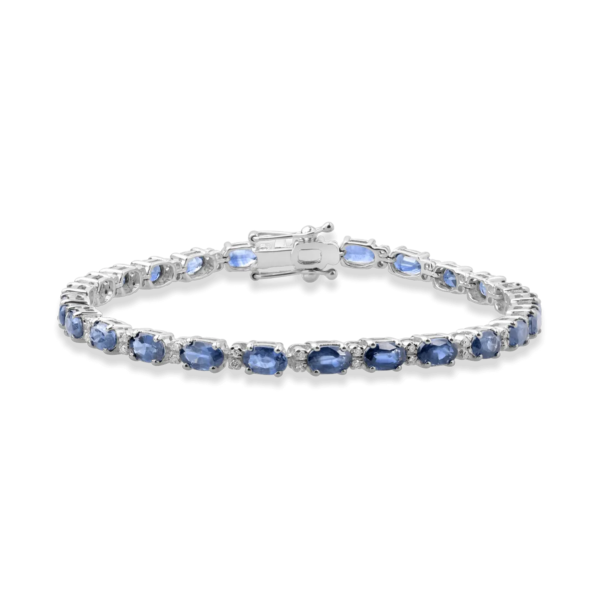Bratara tennis din aur alb cu safire ovale de 8.1ct si diamante de 0.23ct