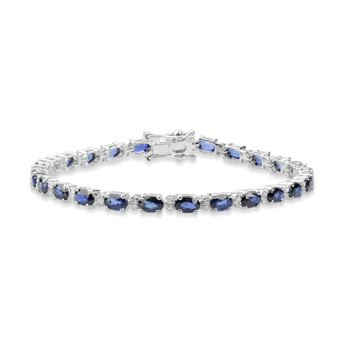 Bratara tennis din aur alb cu safire ovale de 8.73ct si diamante de 0.27ct