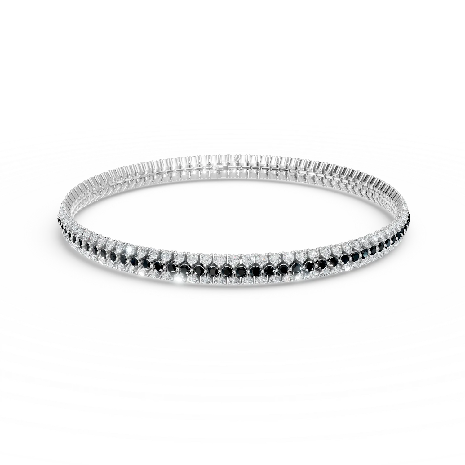 Contur expresiv si nuante versatile. Conceputa pentru a fi adorata, bratara tennis din aur alb cu zirconii albe si negre urmeaza o simetrie perfecta care te insoteste mereu. Care iti dezvaluie personalitatea. TEILOR este despre tine. Despre bucuria fiecarei clipe.
