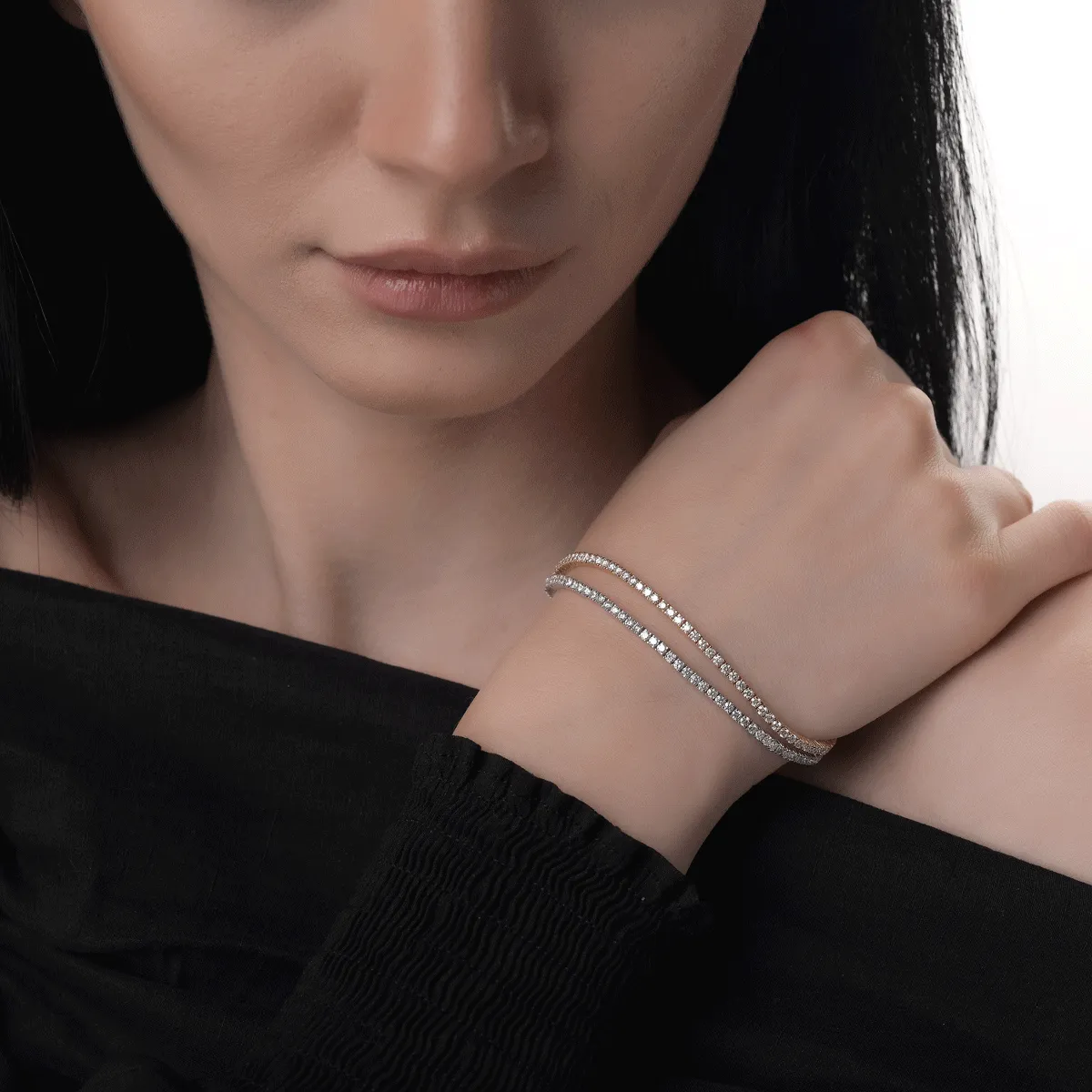Poarta bijuteriile care te definesc. Bratara tennis din aur alb-galben cu diamante de 4.72ct aduce impreuna lumina celor doua tonuri de aur si stralucirea spectaculoasa a diamantelor. Fiecare piatra reflecta perfect claritatea si intensitatea luminii, oferind bratarii o prezenta eleganta si sofisticata. Este o creatie ce exprima echilibru, rafinament si feminitate atemporala. Poarta-o ca pe o extensie a stilului tau personal si lasa-i stralucirea sa vorbeasca pentru tine. TEILOR vorbeste despre tine!
