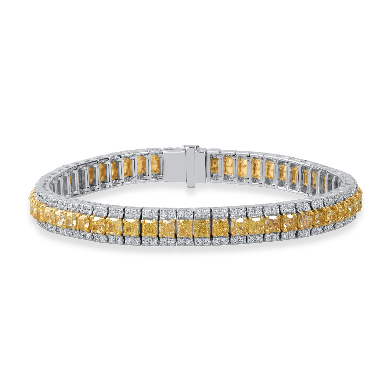 Bratara tennis din aur alb-galben cu diamante galbene cushion si incolore de 10.3ct