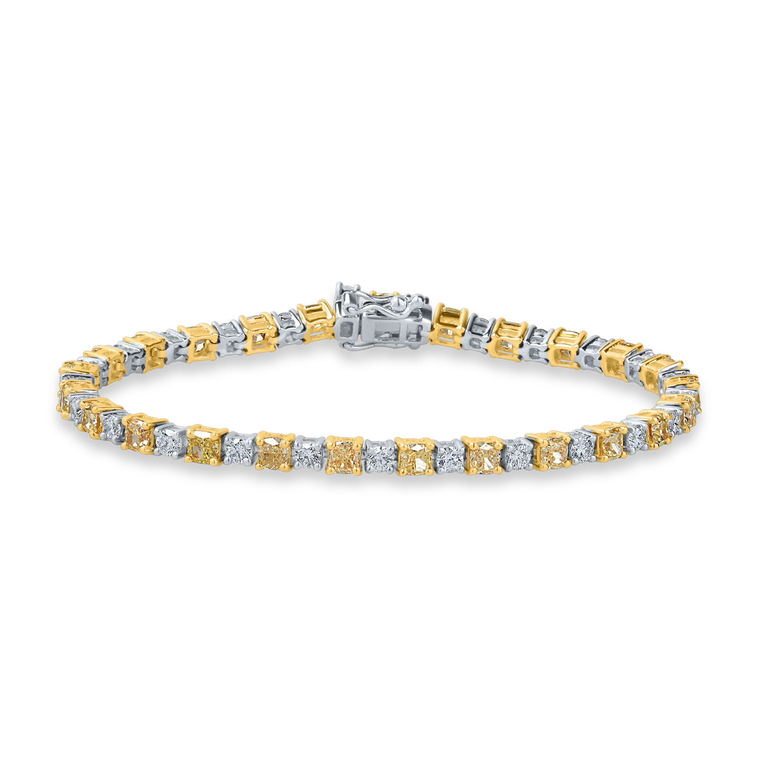 Bratara tennis din aur alb-galben cu diamante galbene si incolore de 6ct