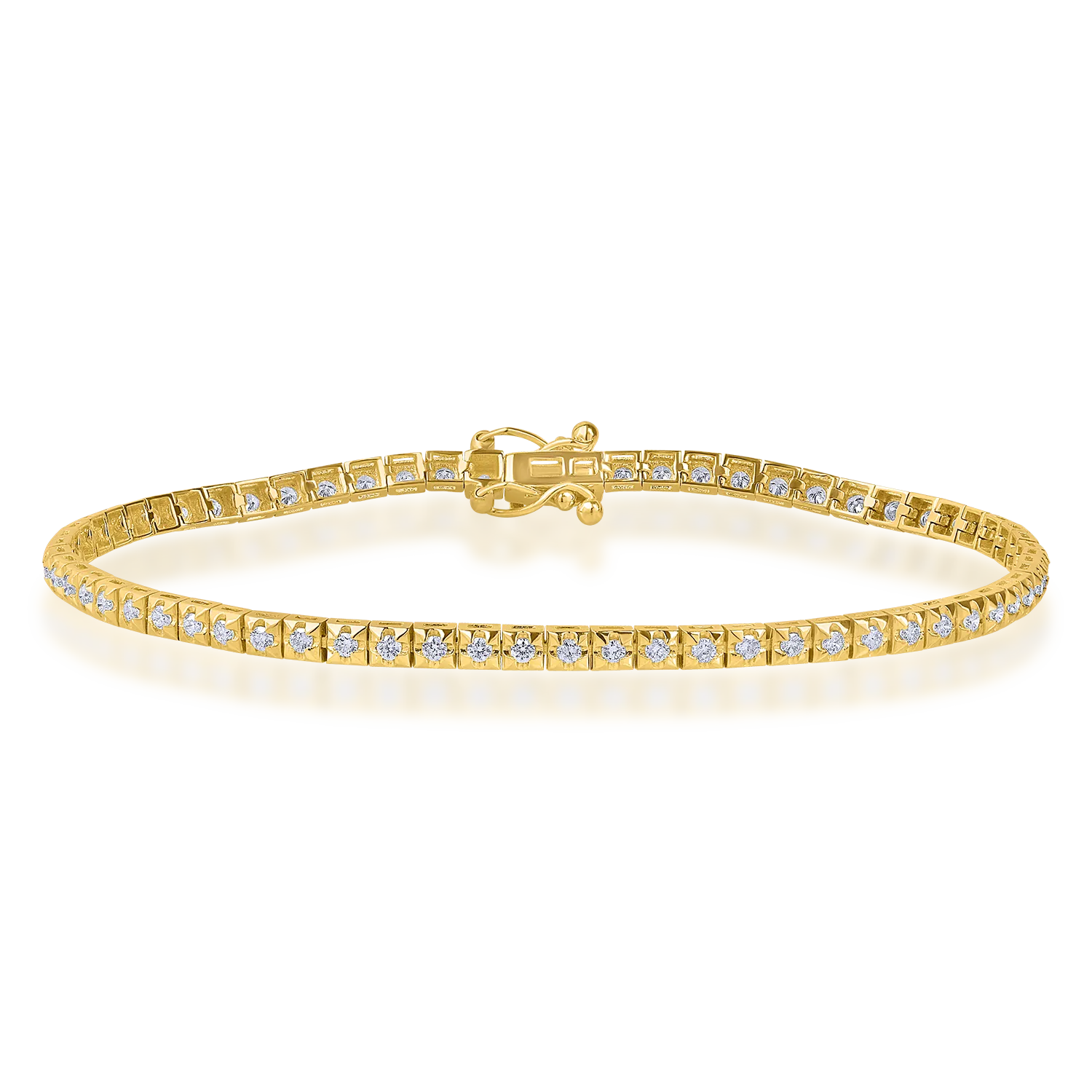 Paseste in lumea seducatoare a bijuteriilor. Bratara tennis din aur galben cu diamante de 1ct dezvaluie echilibrul perfect intre rafinament si feminitate. Stralucirea subtila a diamantelor se contopeste armonios cu caldura aurului galben, oferind o bijuterie atemporala, plina de gratie si distinctie. Este o piesa ce pune in valoare eleganta naturala si personalitatea celei care o poarta, completand perfect atat tinutele de zi, cat si aparitiile de seara. Alege designul stralucitor al piesei care va deveni o sursa inepuizabila de inspiratie!