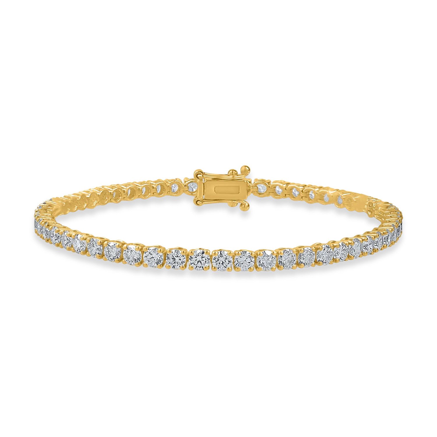 Paseste in lumea seducatoare a bijuteriilor. Conceputa pentru a fi adorata, bratara tennis din aur galben cu diamante de 5ct fascineaza prin stralucirea calda a metalului pretios si prin jocul de lumina al diamantelor. Designul sau simetric evidentiaza perfect feminitatea si rafinamentul atemporal, transformand aceasta bijuterie intr-o alegere ideala pentru orice ocazie. Este expresia perfecta a luxului discret si a elegantei autentice. TEILOR aduce un plus de rafinament care te insoteste pretutindeni!