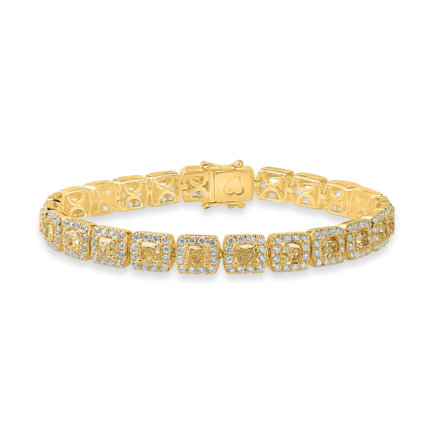 Bratara tennis din aur galben cu diamante galbene cushion si rotunde de 8.9ct