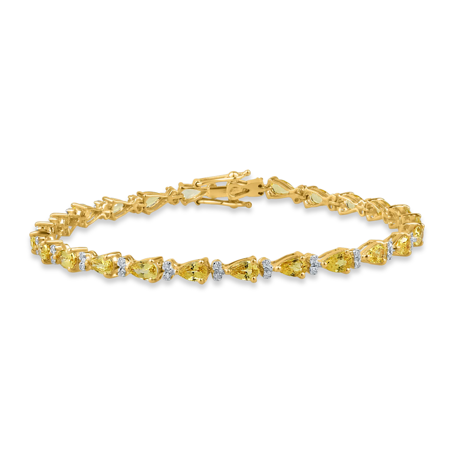 Bratara tennis din aur galben cu safire galbene pear de 6.5ct si diamante de 0.27ct