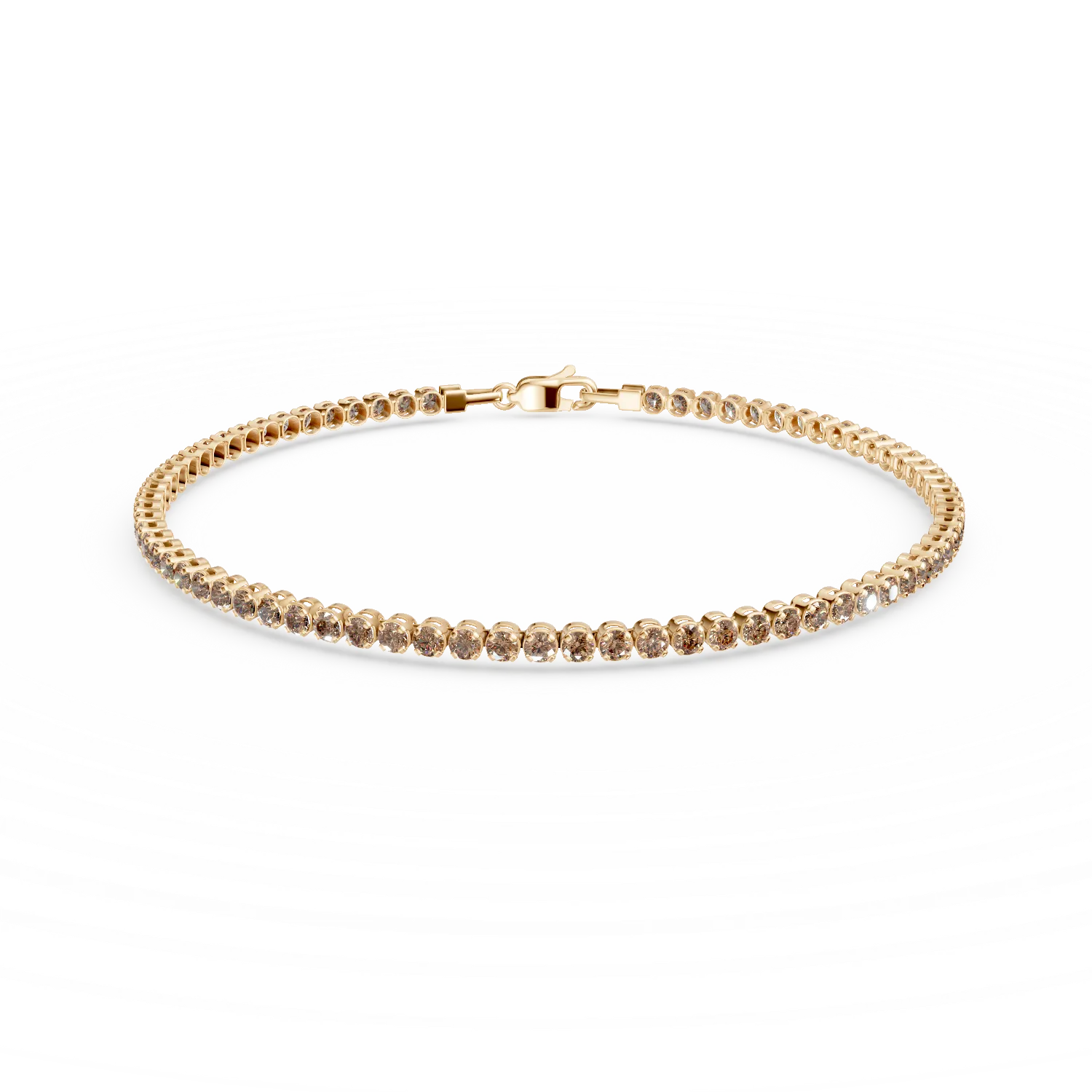 Poarta bijuteriile care te definesc. O piesa surprinzatoare, bratara tennis din aur galben cu zirconia maro este accesoriul cheie al femeilor moderne. Un rand fluid de pietre stralucitoare care inconjoara incheietura mainii si iti evidentiaza latura eleganta. TEILOR esti tu – mereu in pas cu moda.