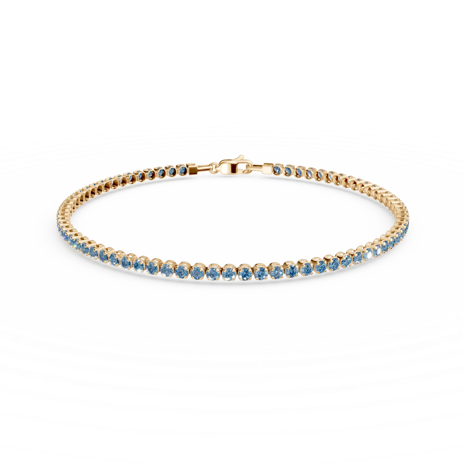 Poarta bijuteriile care te definesc si completeaza-ti stilul cu aceasta bratara tennis din aur galben. O combinatie perfecta intre eleganta clasica si un design modern, fiind o alegere ideala pentru orice ocazie. Zirconiile albastre adauga o nota de rafinament si mister, evocand senzatia de pace si armonie, in timp ce aurul galben confera un aer cald si luxos. Forma simpla si liniile elegante ale bratarii se potrivesc perfect stilului tau, fiind o piesa versatila care poate fi purtata atat la evenimente speciale, cat si zi de zi. Alege sa porti o bijuterie ce reflecta personalitatea ta vibranta si sofisticata, si simte-te mereu increzatoare si eleganta cu aceasta bratara tennis exceptionala.
