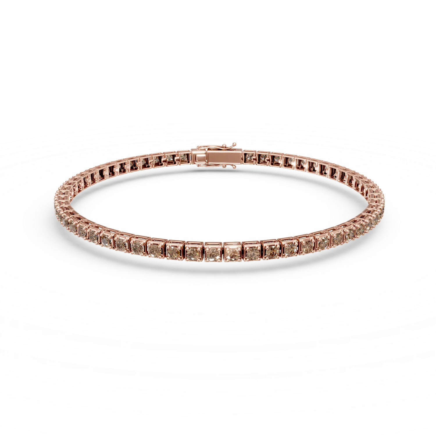 Bratara tennis din aur roz cu diamante maro de 1.5ct