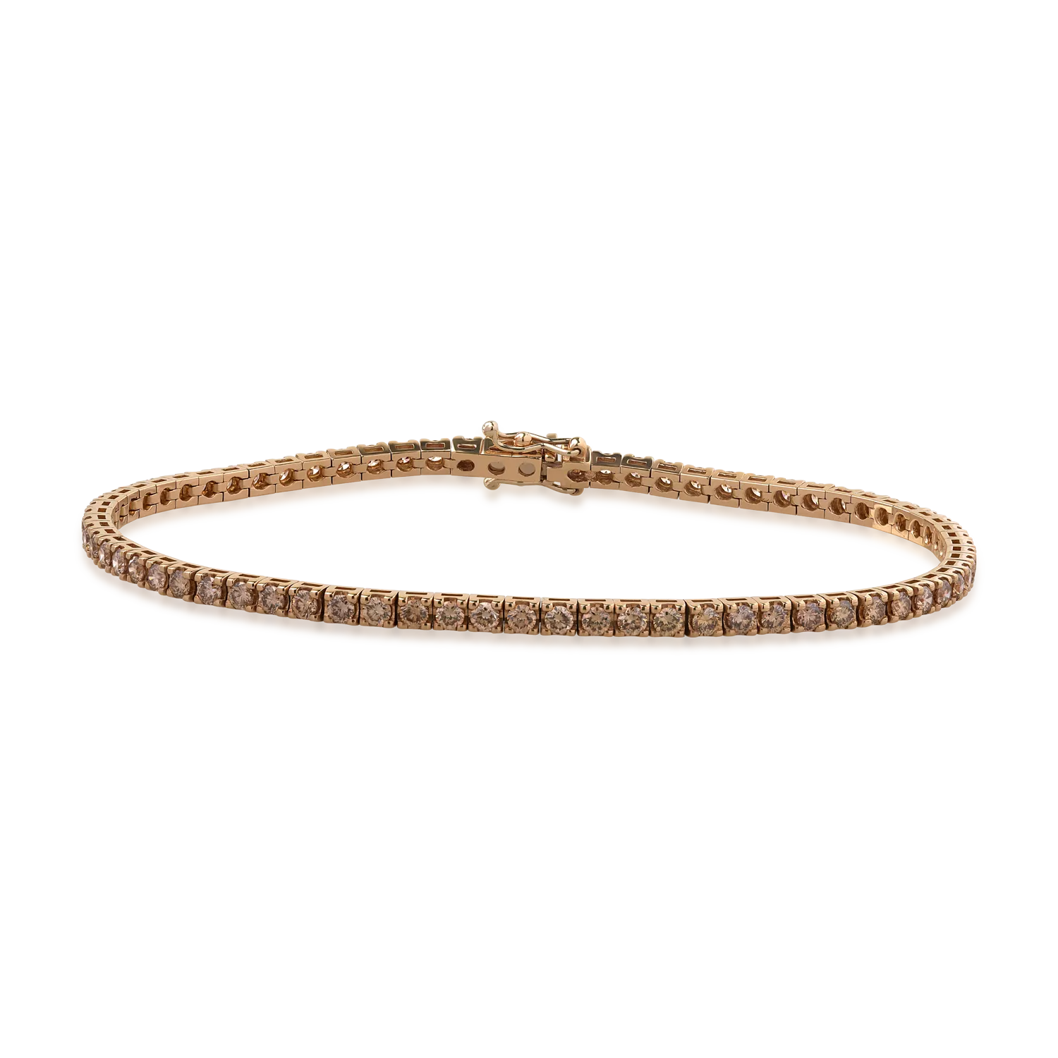 Bratara tennis din aur roz cu diamante maro de 3.8ct