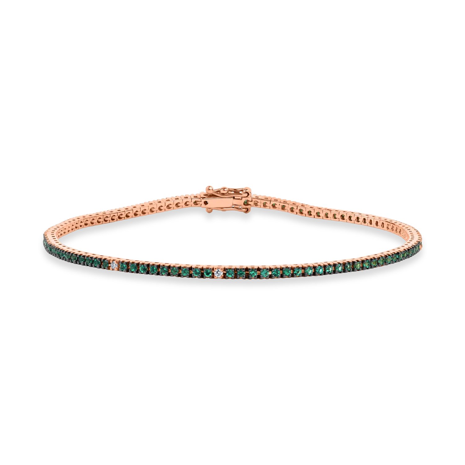 Bratara tennis din aur roz cu diamante si smaralde de 0.8ct