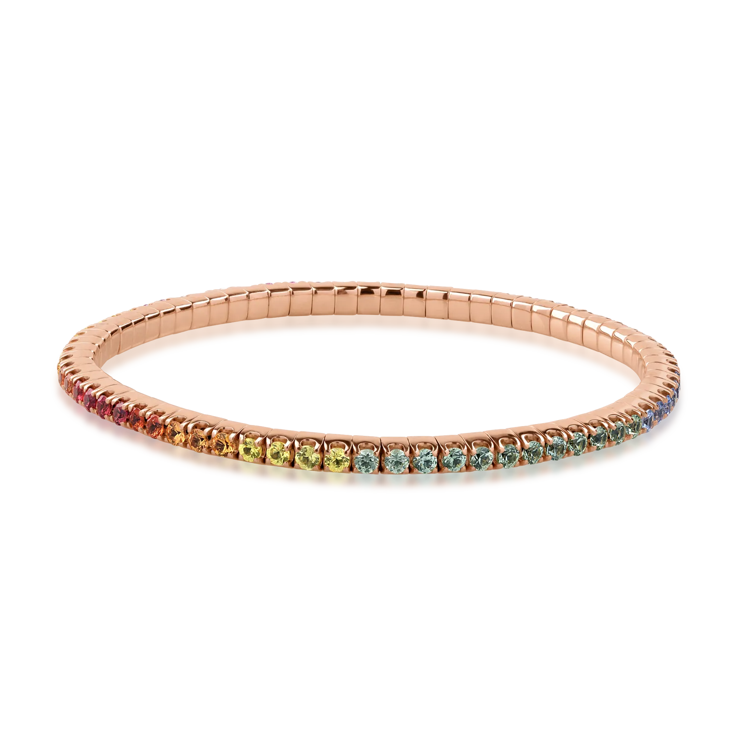 Bratara tennis din aur roz cu safire multicolore de 4.05ct