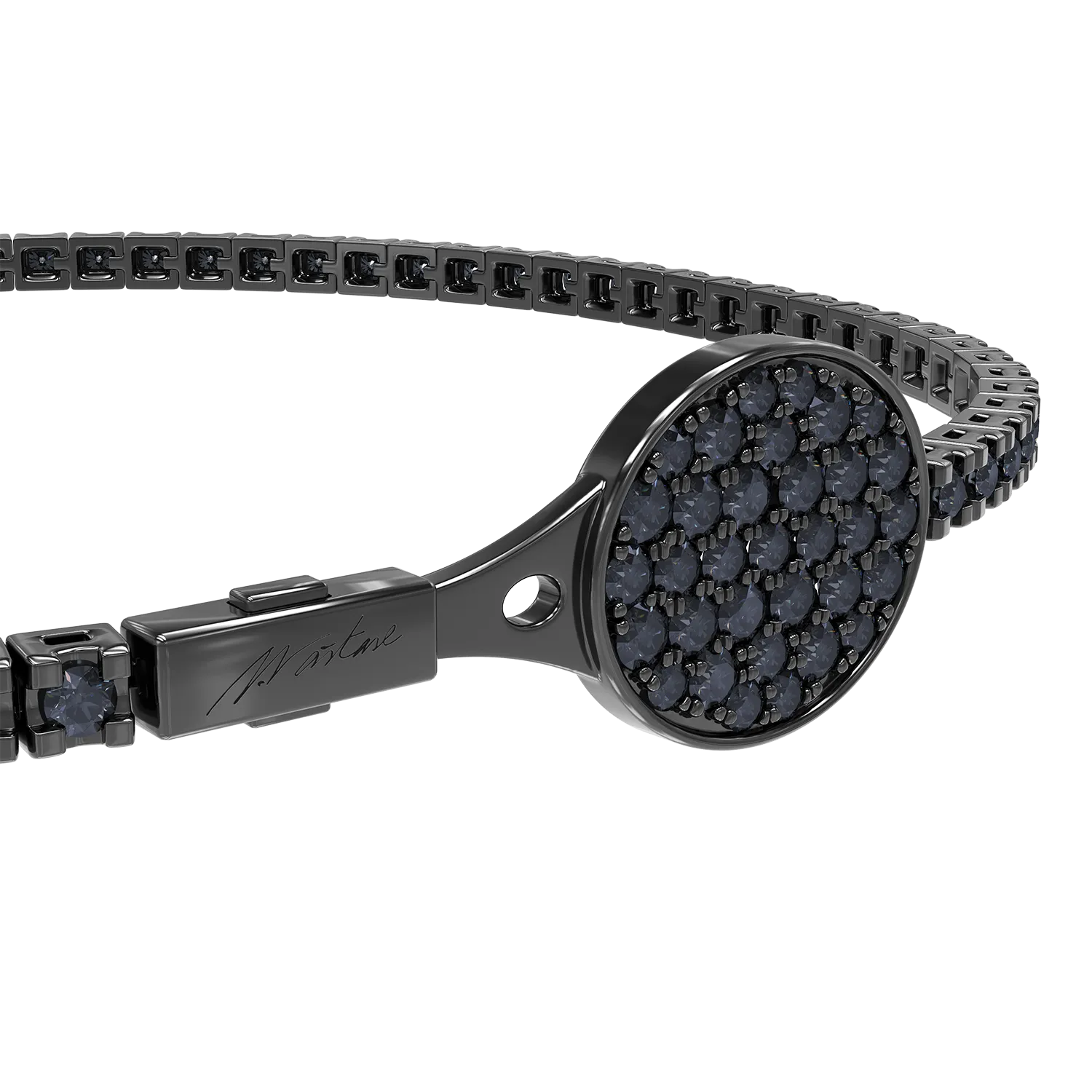 O poveste despre devotament, putere si ambitie, pusa in evidenta de colectia capsula Tennis by Ilie Nastase. Bratara tennis din aur negru se remarca prin prezenta safirelor negre, o raritate a pietrelor pretioase si o premiera in colectiile TEILOR. Un accesoriu cu un design unic, simbolizand pasiune si anduranta prin elementul integrat in sistemul de inchidere: racheta de tenis. Pentru cei ce sunt de neoprit. Fiecare bratara achizitionata este insotita de un album cadou, semnat de Ilie Nastase.