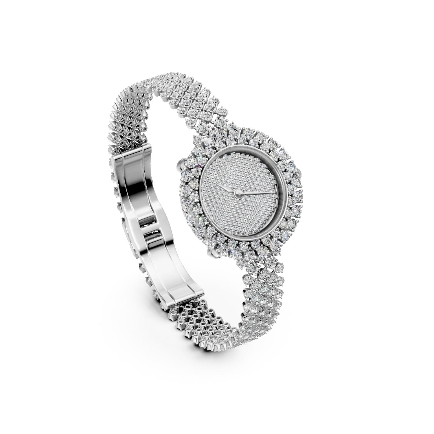 Rafinament absolut si precizie impecabila definesc acest ceas din aur alb cu diamante de 5.1ct, cu mecanism elvetian. Stralucirea diamantelor pune in valoare designul elegant, creand un efect vizual spectaculos. O bijuterie functionala, care imbina perfect estetica rafinata cu tehnologia de inalta clasa. Descopera eleganta autentica a colectiilor TEILOR si poarta luxul in forma sa pura!