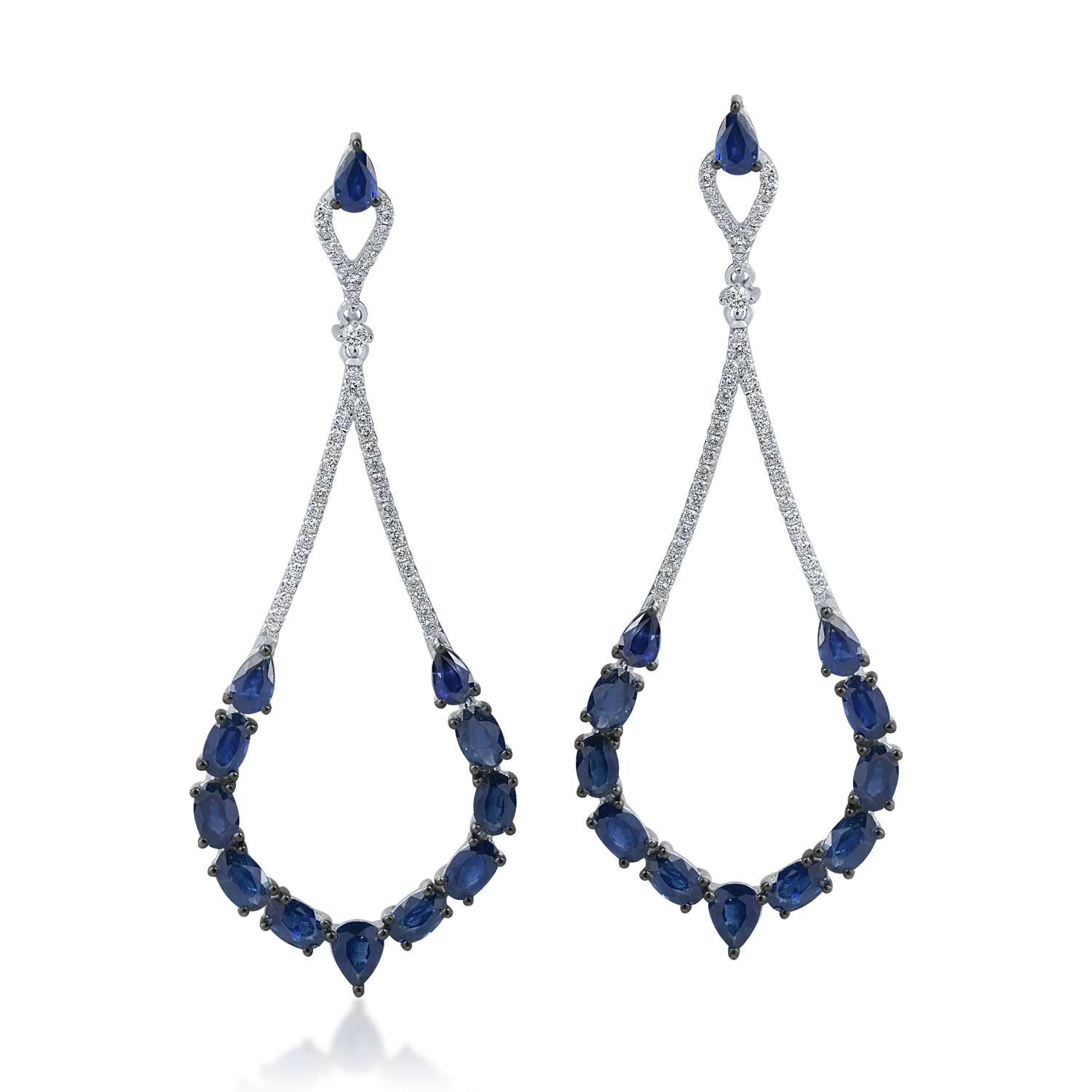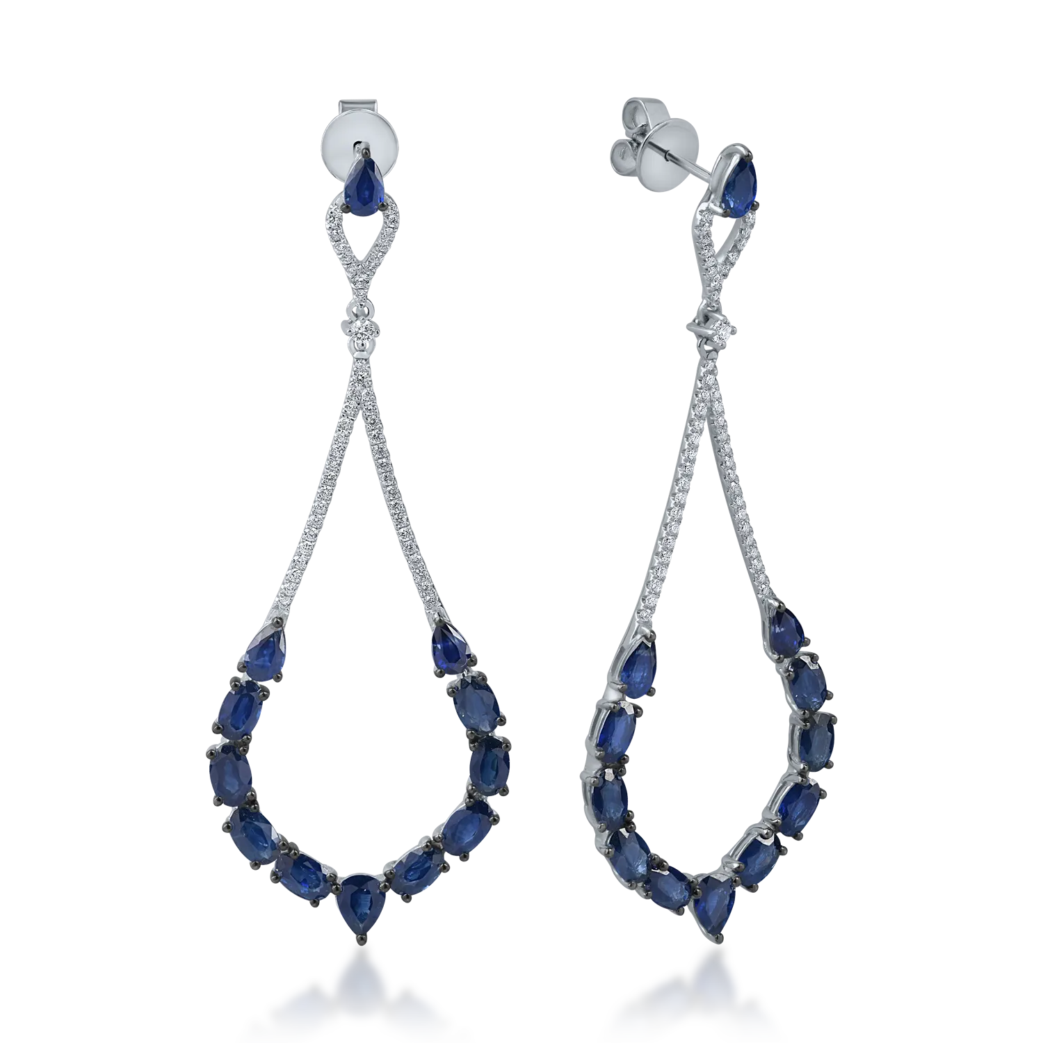 Cercei candelabru din aur alb cu safire pear si ovale de 7ct si diamante de 0.5ct