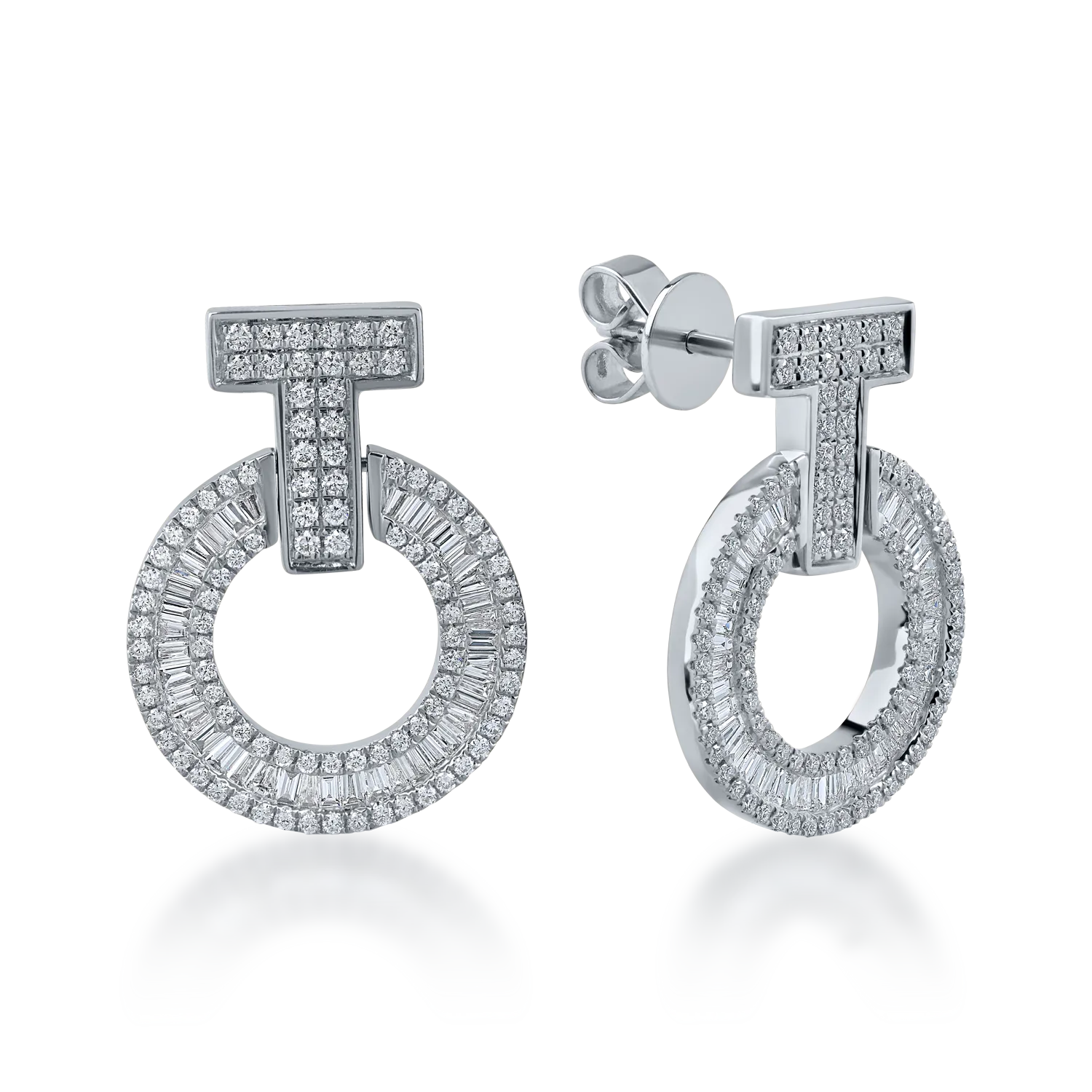 Cercei cerc din aur alb cu diamante baguette si rotunde de 1.2ct