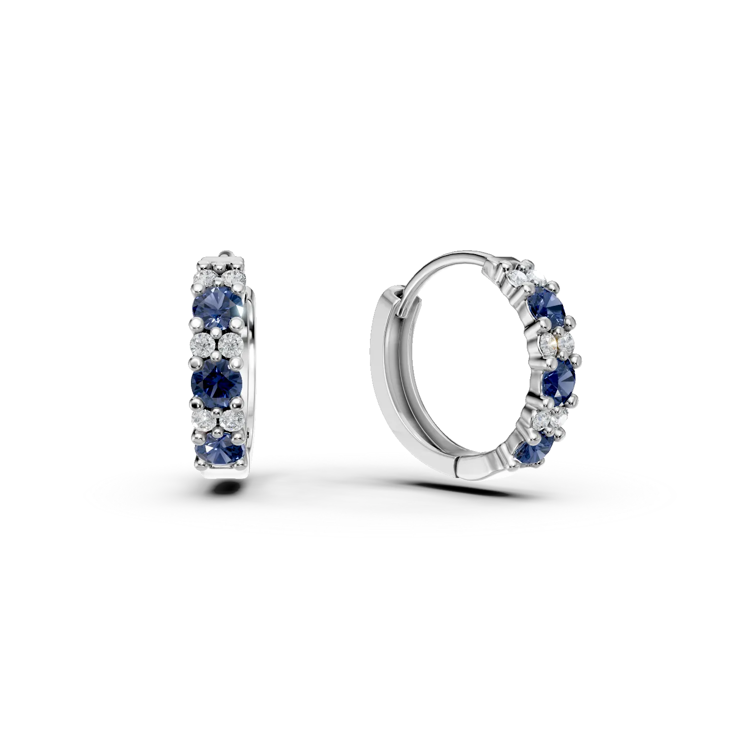 Cercei creole din aur alb cu safire de 0.4ct si diamante de 0.09ct