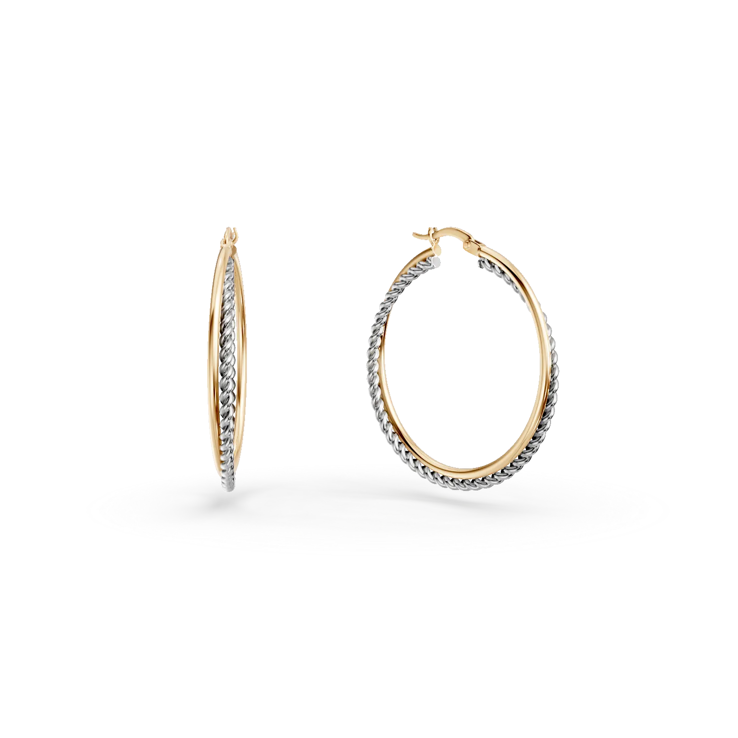 Bijuteria reprezinta alegerea ideala atunci cand doresti sa adaugi o nota proaspata tinutelor tale. Cu un design atemporal, cerceii creole din aur alb-galben sunt accesoriul principal in conturarea unei tinute elegante. Lasa-i sa vorbeasca despre tine.