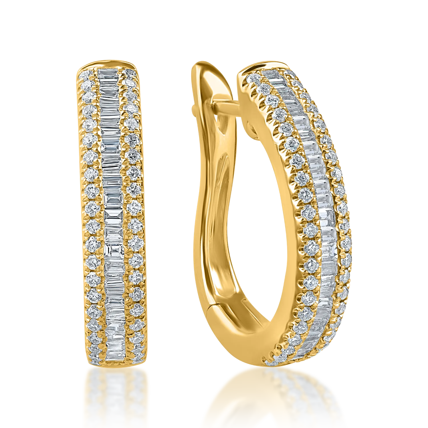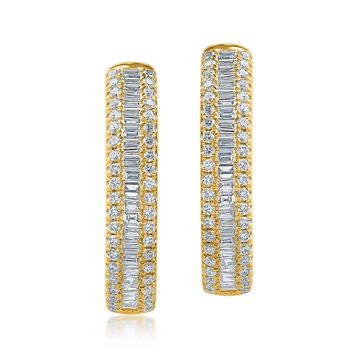 Cercei creole din aur galben cu diamante baguette si rotunde de 0.6ct