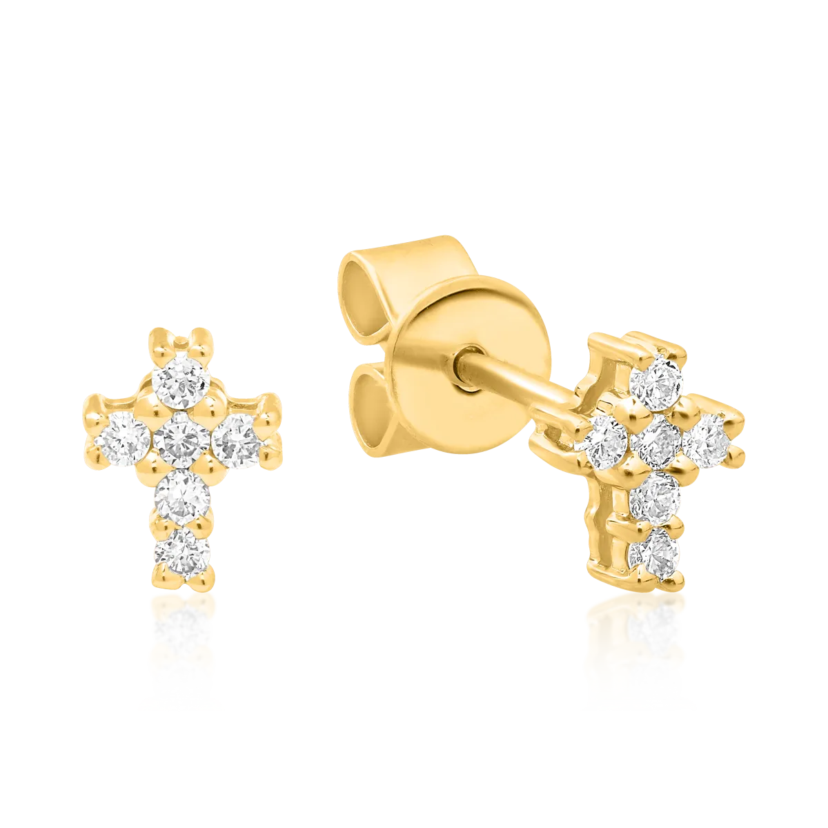 Cercei cruciulite din aur galben cu diamante de 0.086ct