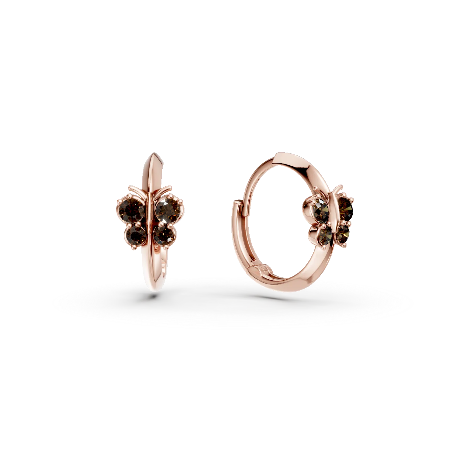 Cercei cu fluturasi din aur roz si zirconii maro pentru copii