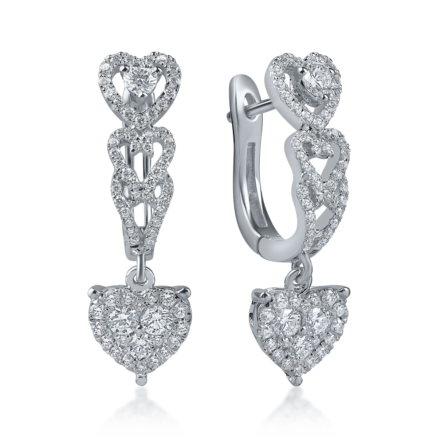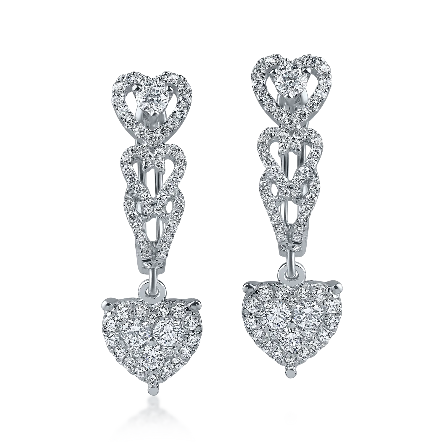 Cercei cu inimi din aur alb cu diamante de 0.6ct