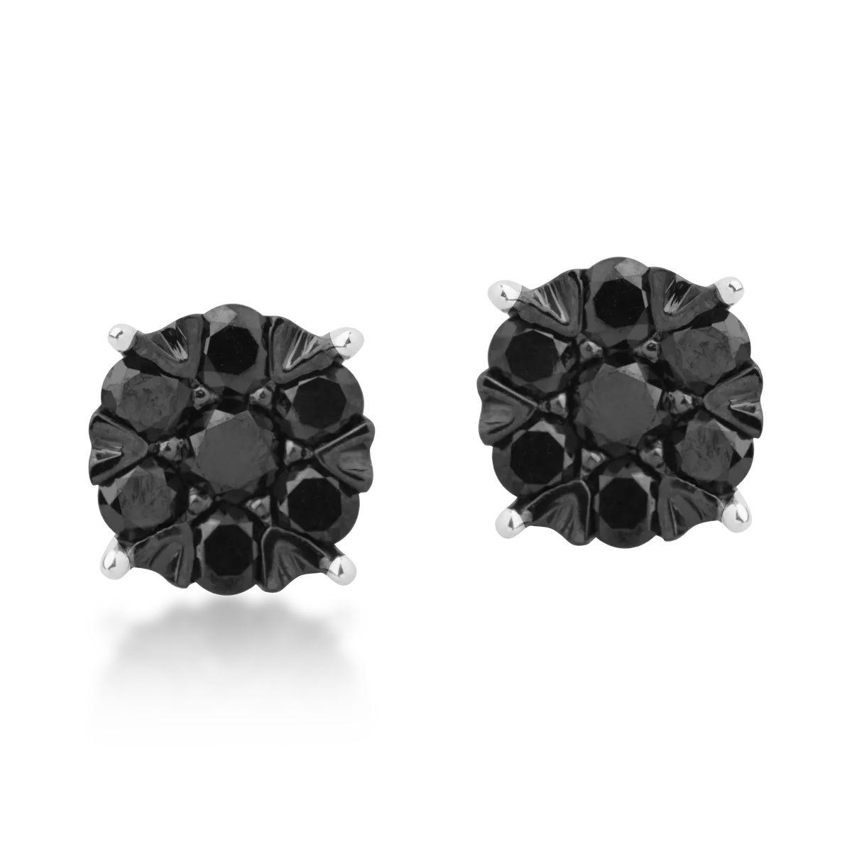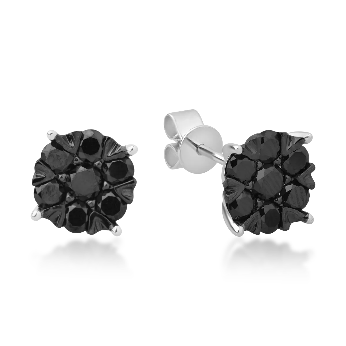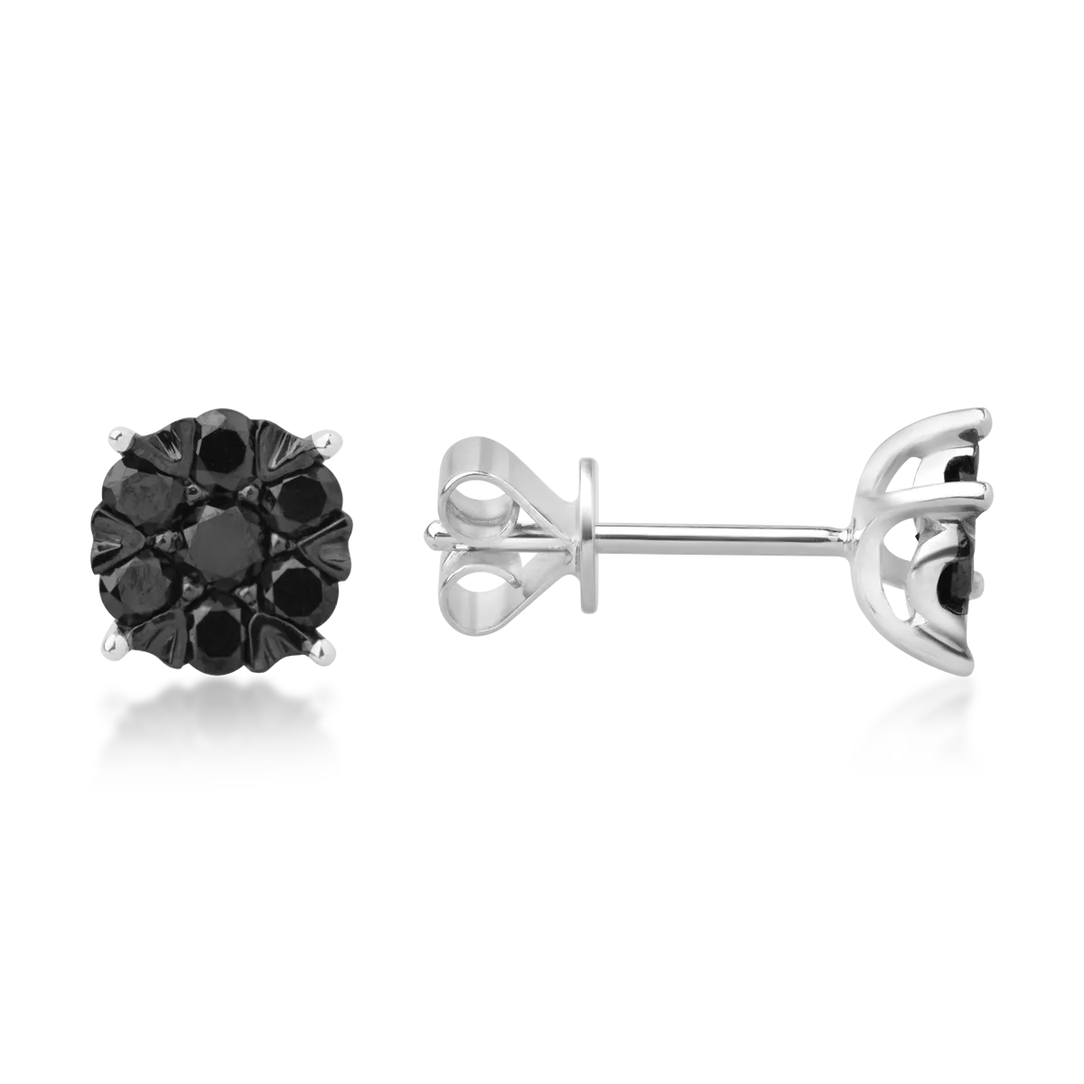 Cercei cu surub din aur alb cu diamante negre de 0.2ct