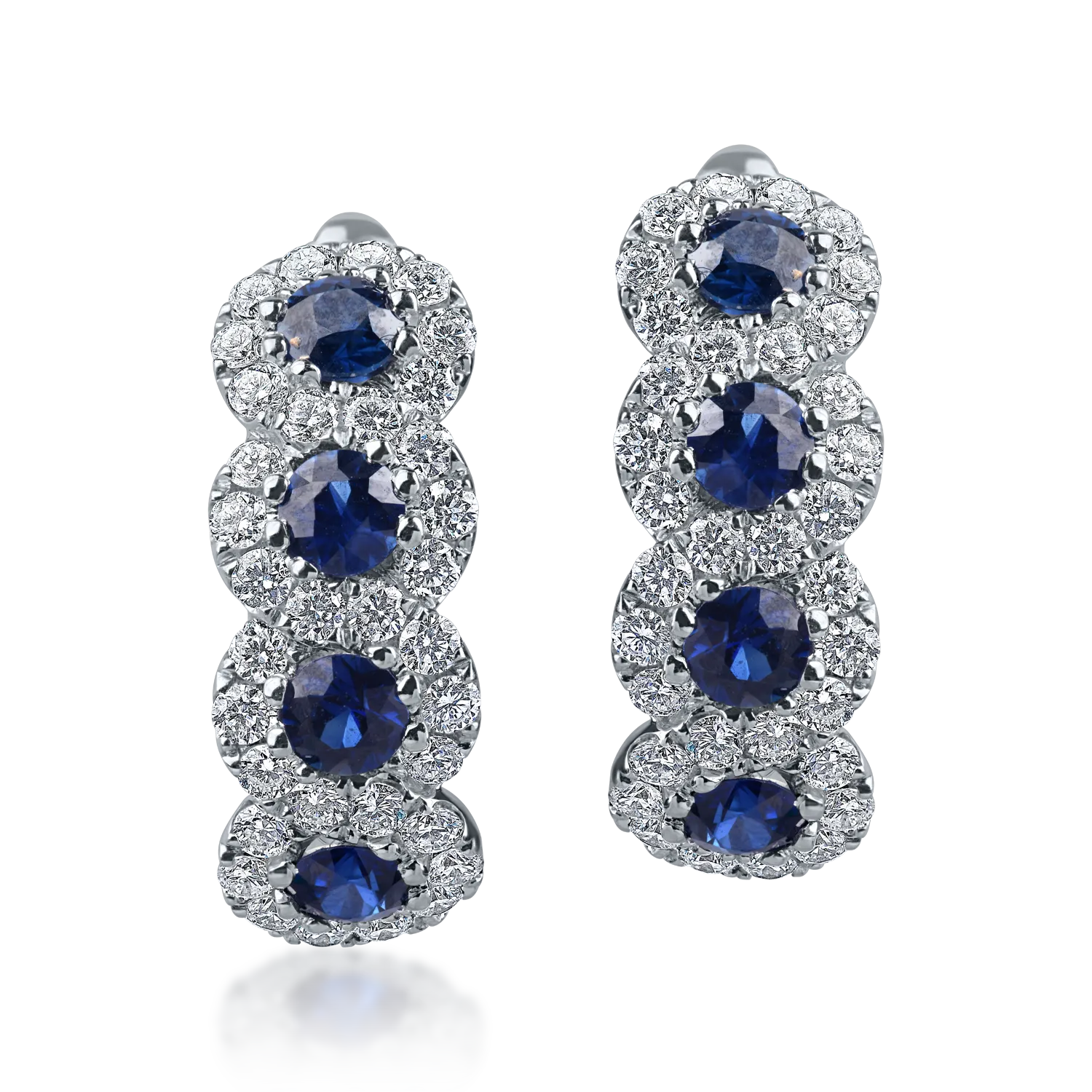 Cercei cu tortite din aur alb cu safire si diamante de 1.9ct