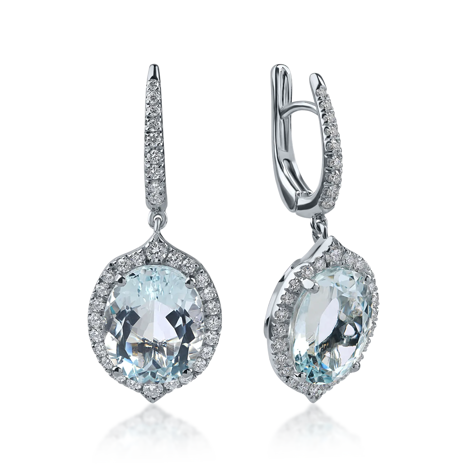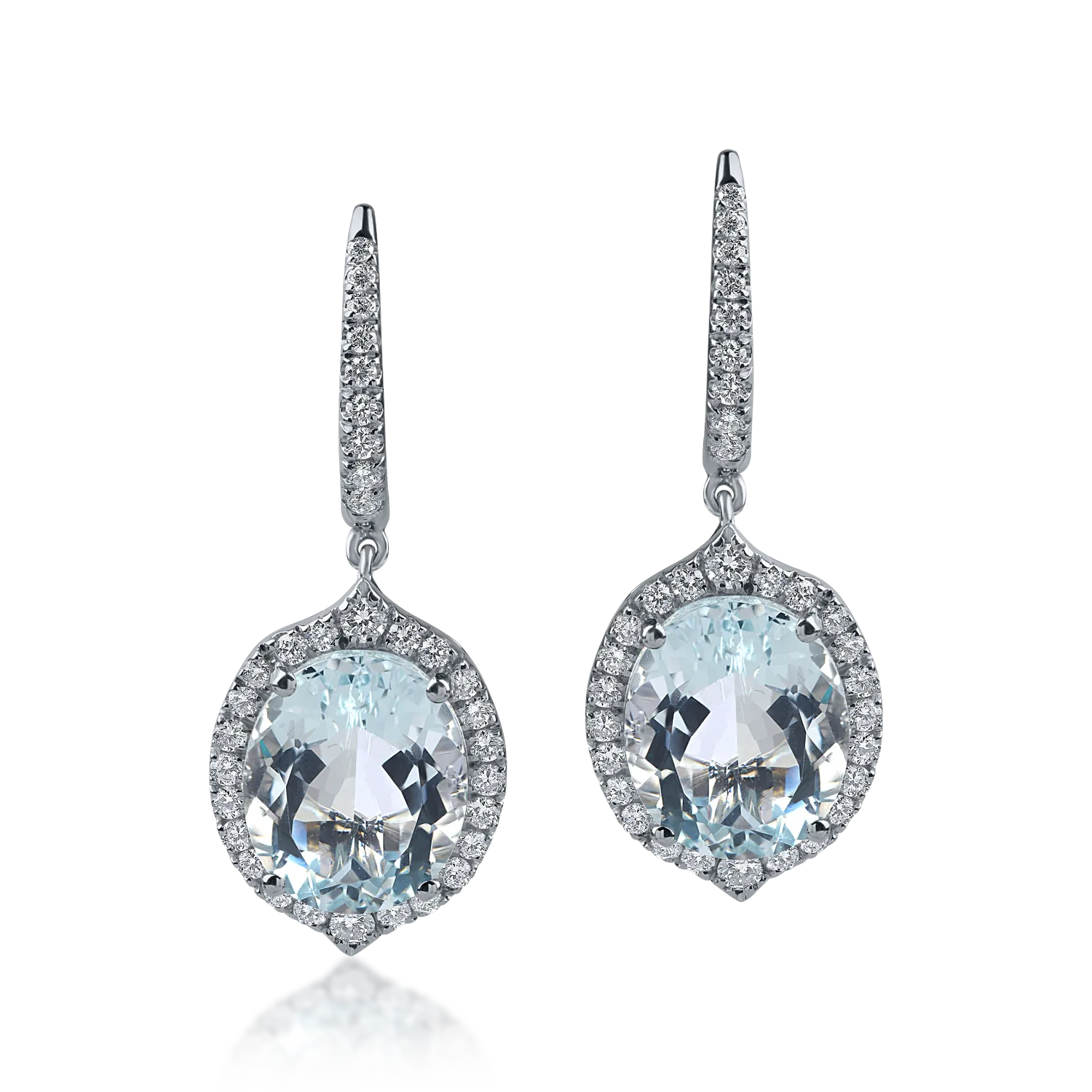 Cercei din aur alb cu acvamarine ovale de 6.94ct si diamante de 0.66ct