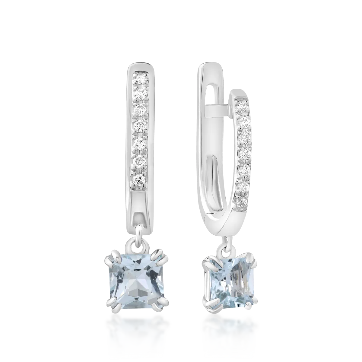 Cercei din aur alb cu acvamarine princess de 0.61ct si diamante de 0.05ct