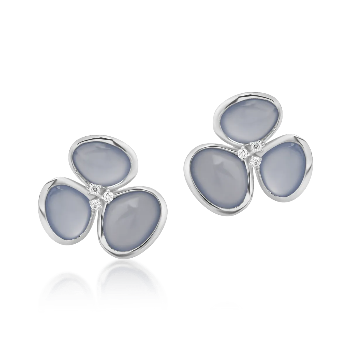 Cercei din aur alb cu calcedonii albastre de 10.2ct si diamante de 0.08ct