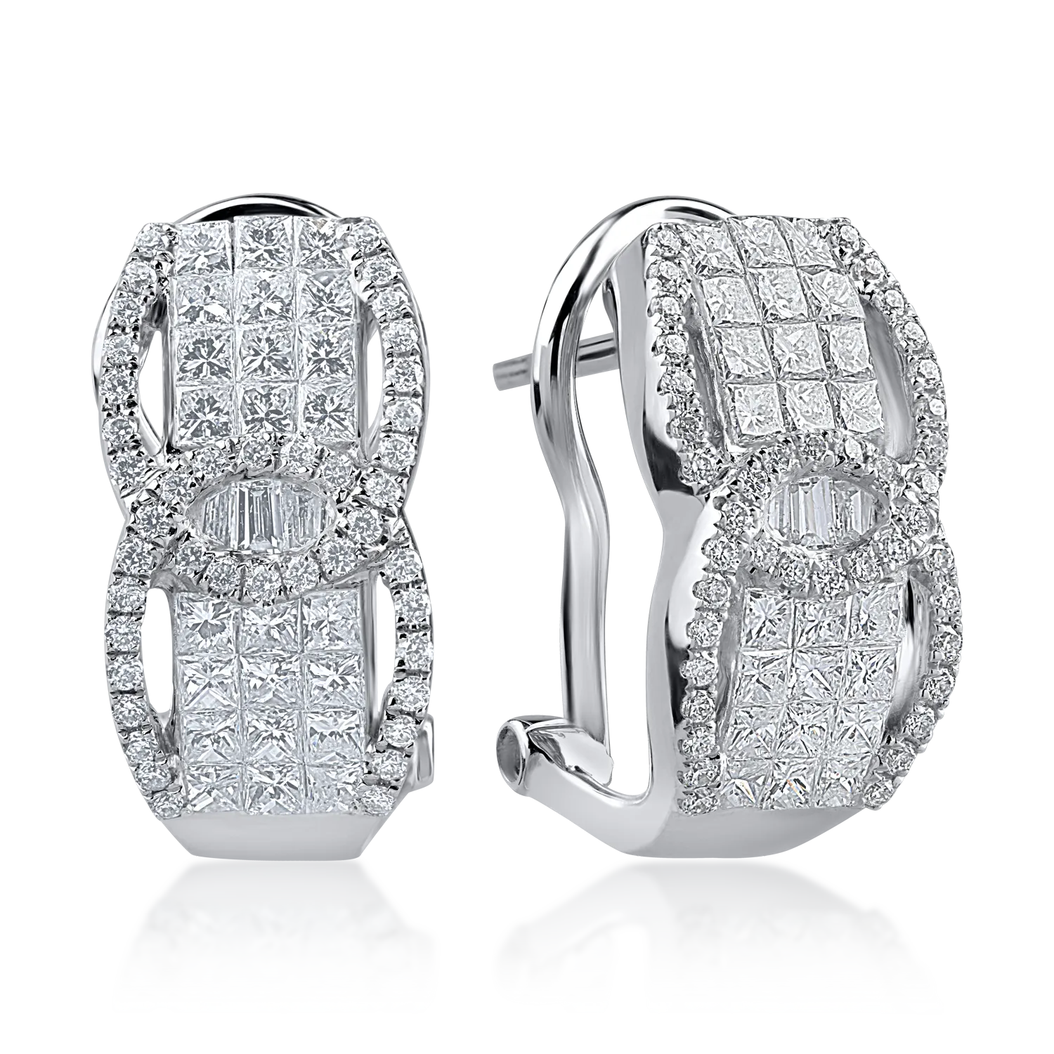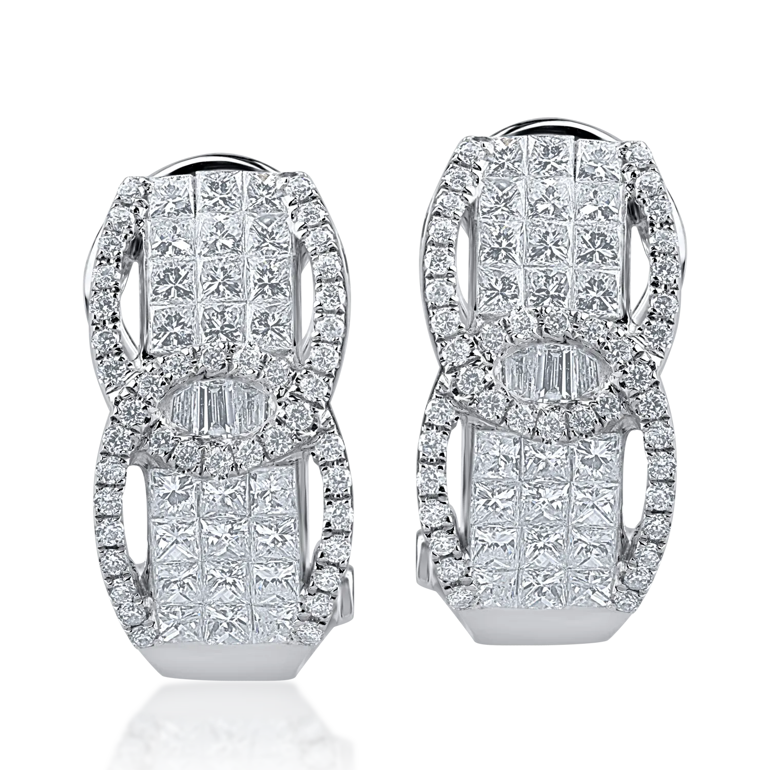 Cercei din aur alb cu diamante baguette, princess si rotunde de 1.41ct