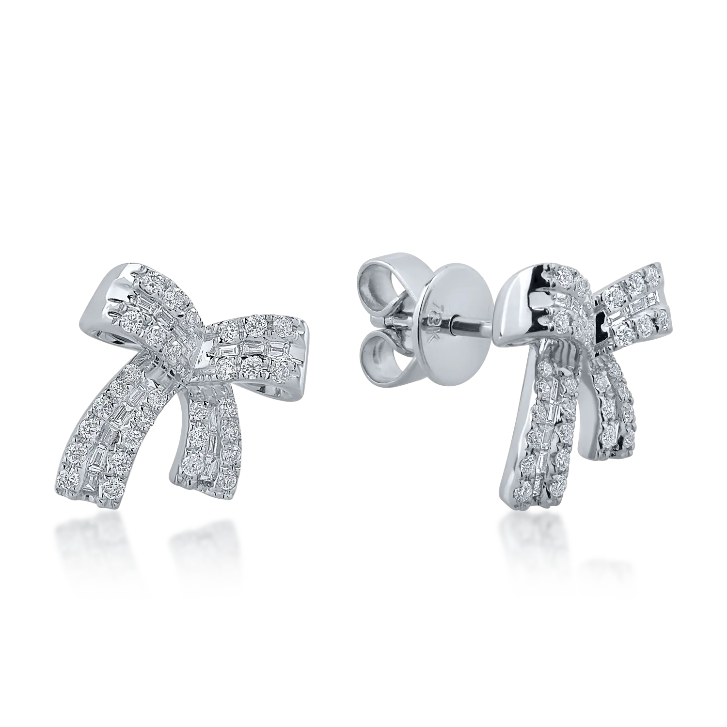 Cercei din aur alb cu diamante baguette si rotunde de 0.3ct