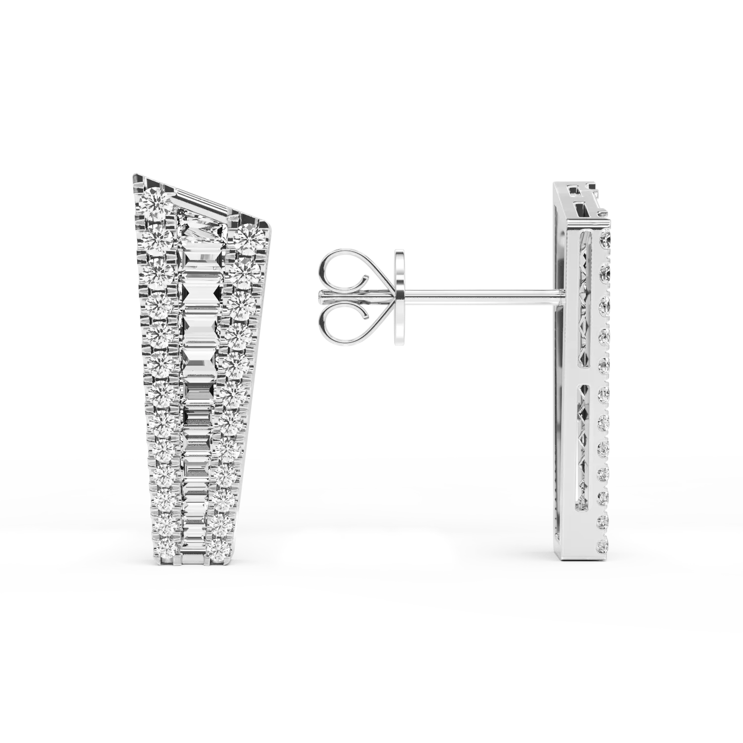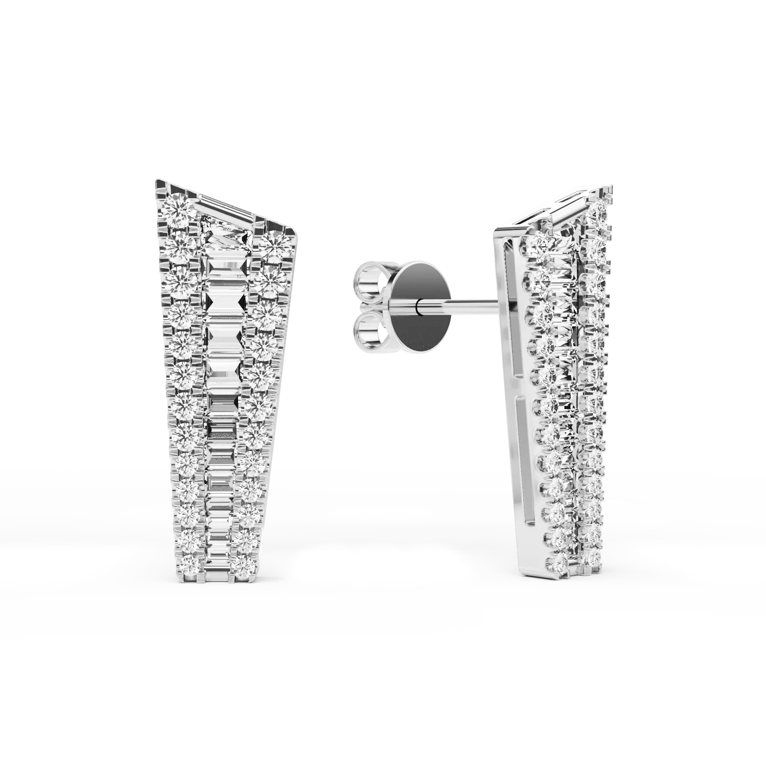 Cercei din aur alb cu diamante baguette si rotunde de 0.84ct