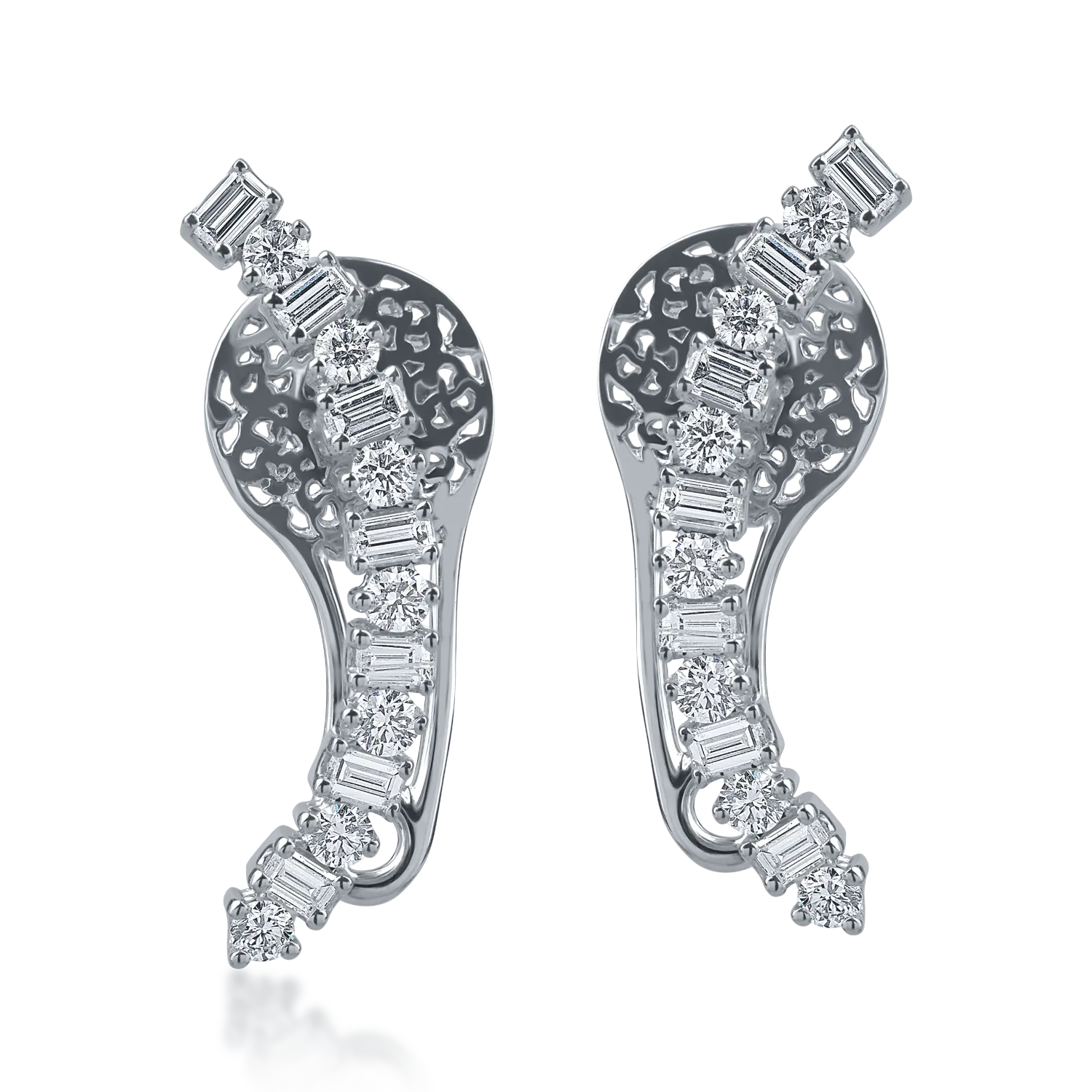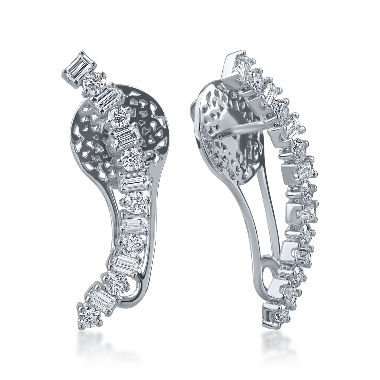 Cercei din aur alb cu diamante baguette si rotunde de 1.09ct