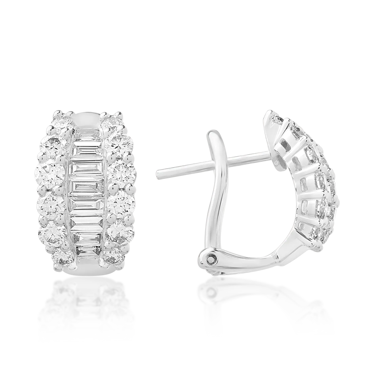 Cercei din aur alb cu diamante baguette si rotunde de 1.36ct