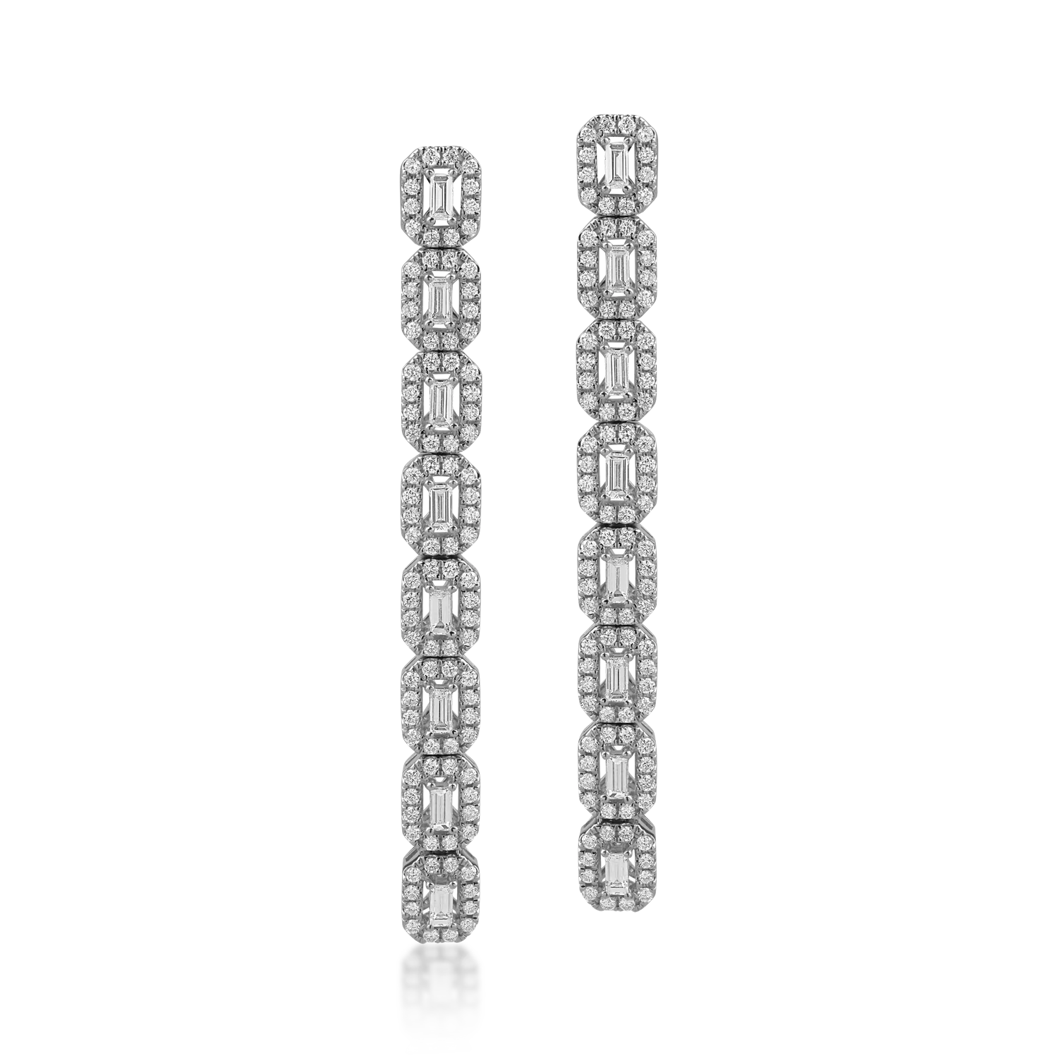 Cercei din aur alb cu diamante baguette si rotunde de 1.57ct