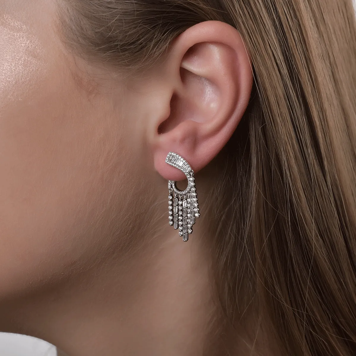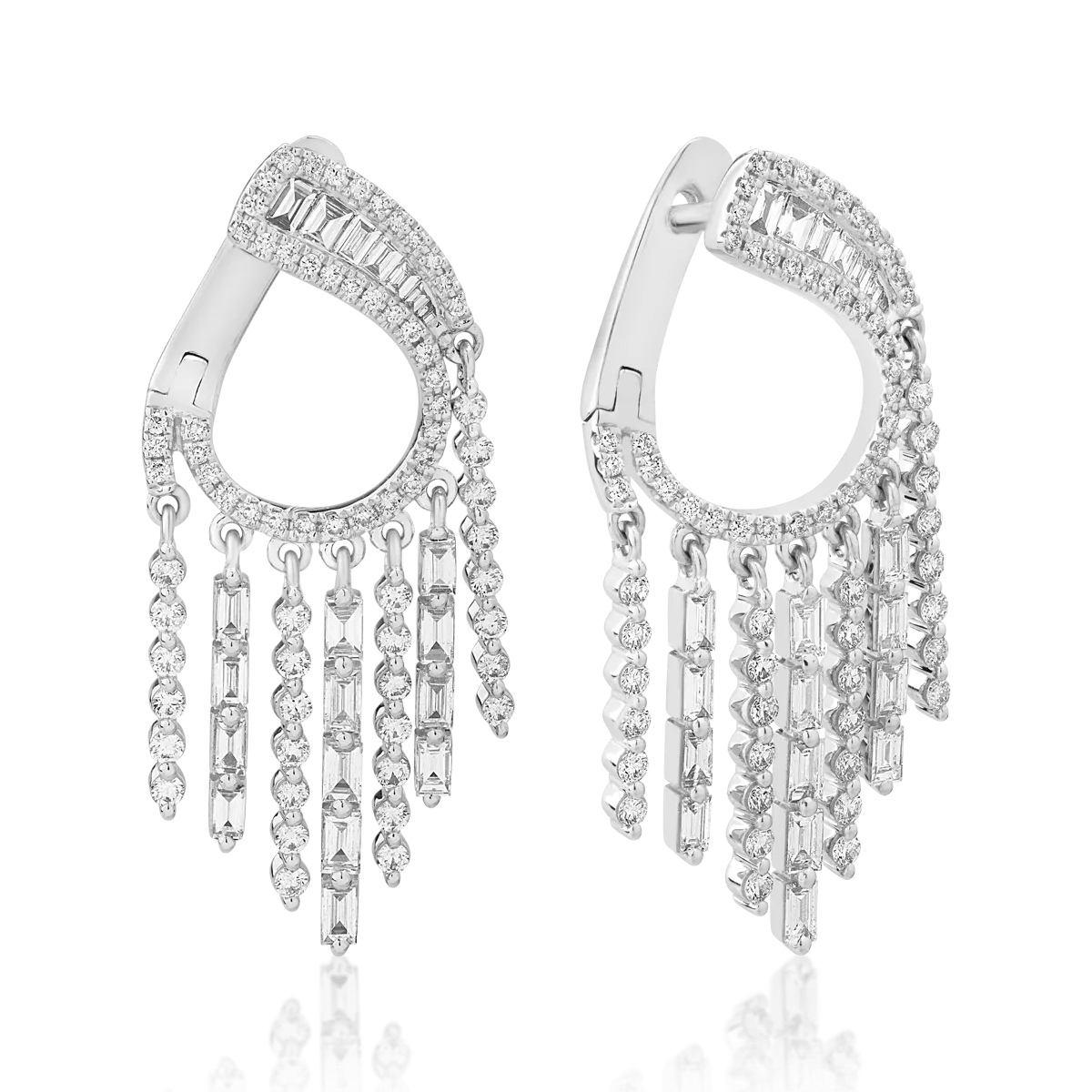 Cercei din aur alb cu diamante baguette si round de 1.84ct