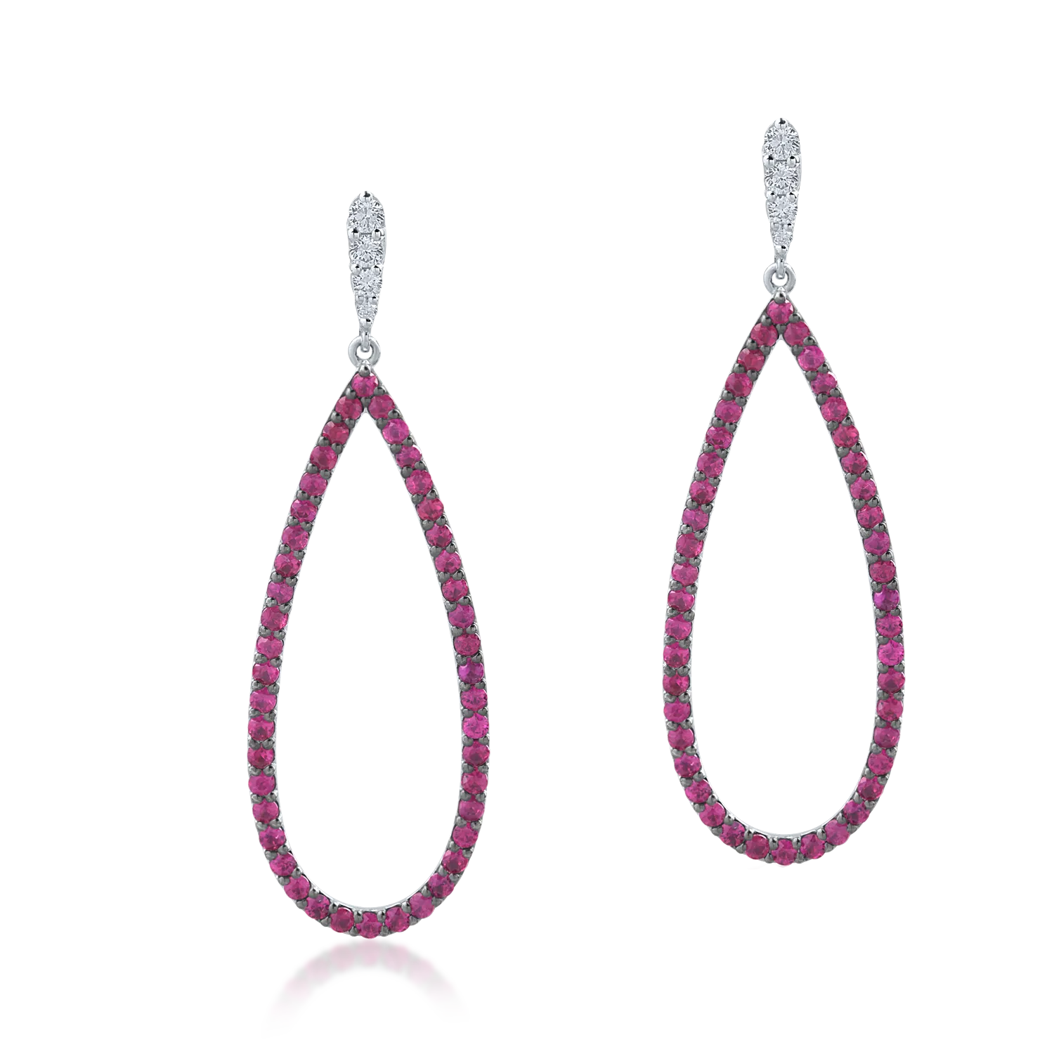 Cercei din aur alb cu diamante de 0.24ct si rubine de 2.1ct