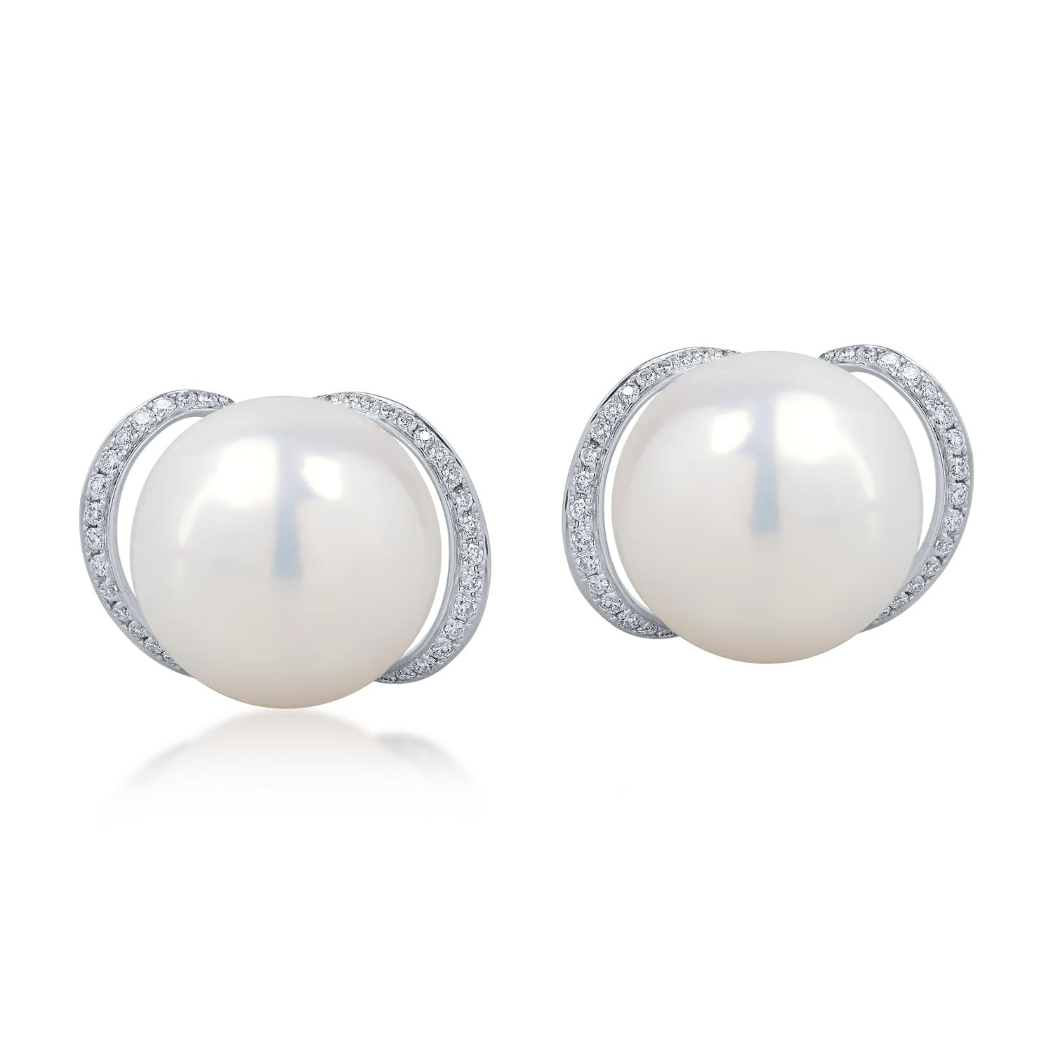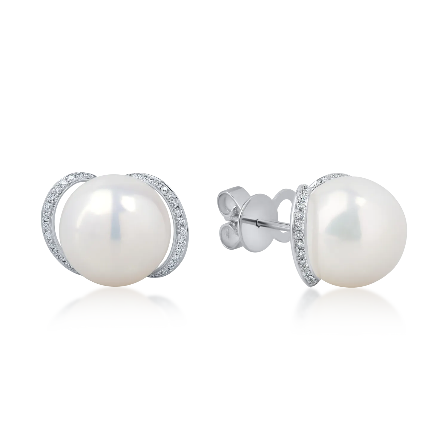 Cercei din aur alb cu diamante de 0.3ct si perle de cultura