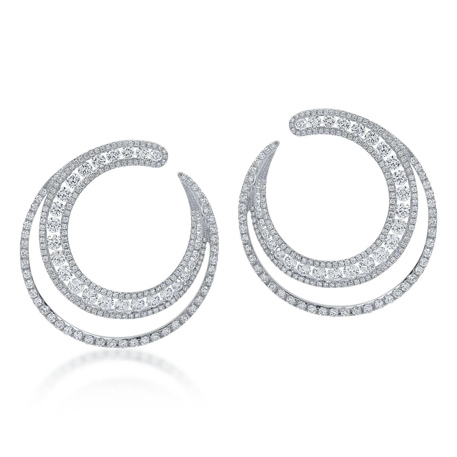 Paseste in lumea seducatoare a bijuteriilor pregatite sa cucereasca inimi si priviri. Perechea de cercei din aur alb cu diamante de 4.17ct imbina echilibrat stralucirea cu eleganta intr-un design pretios. TEILOR vorbeste despre emotia fiecarei clipe.