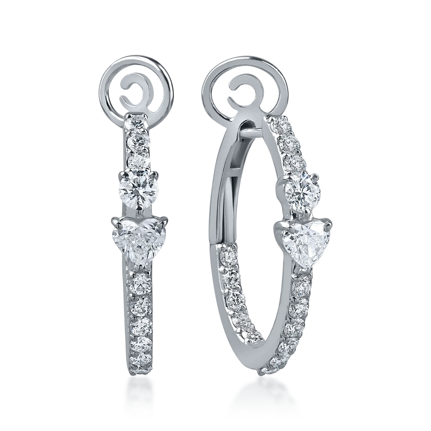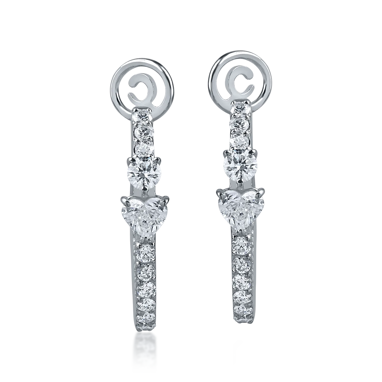 Cercei din aur alb cu diamante heart si rotunde de 1.4ct