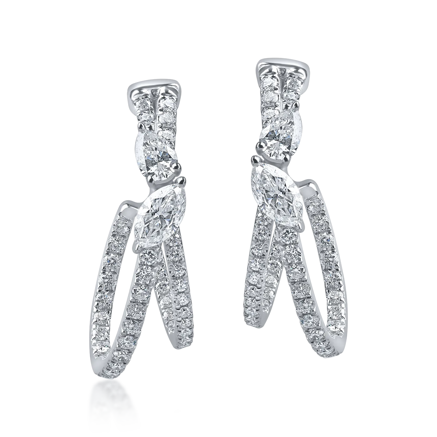 Cercei din aur alb cu diamante marquise, pear si rotunde microsetting de 1.8ct