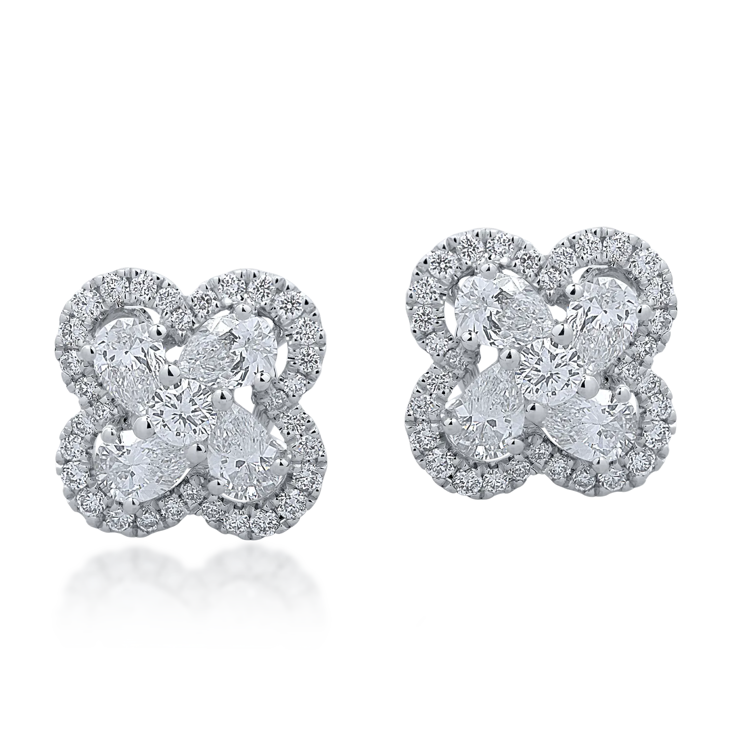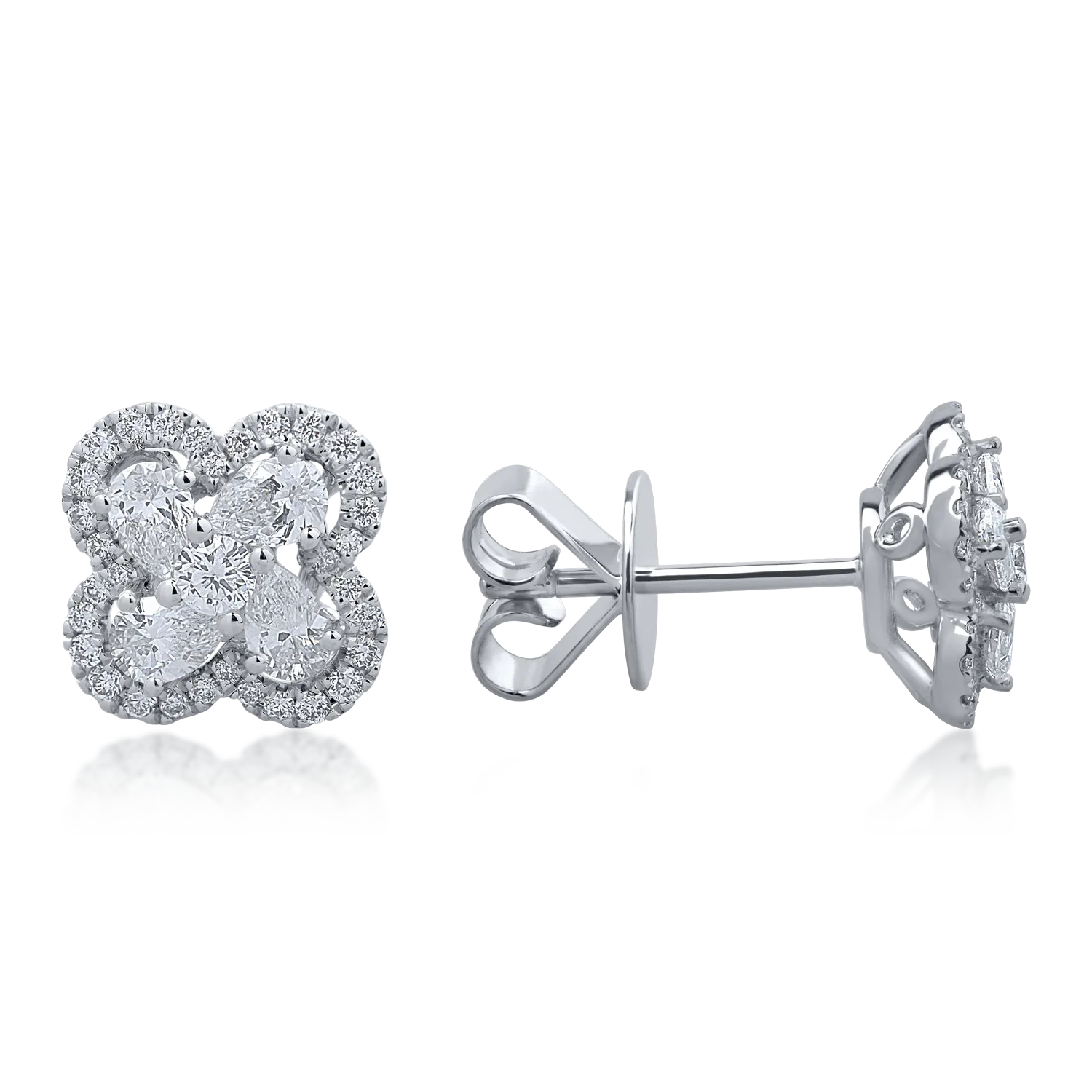 Cercei din aur alb cu diamante pear si rotunde de 0.95ct