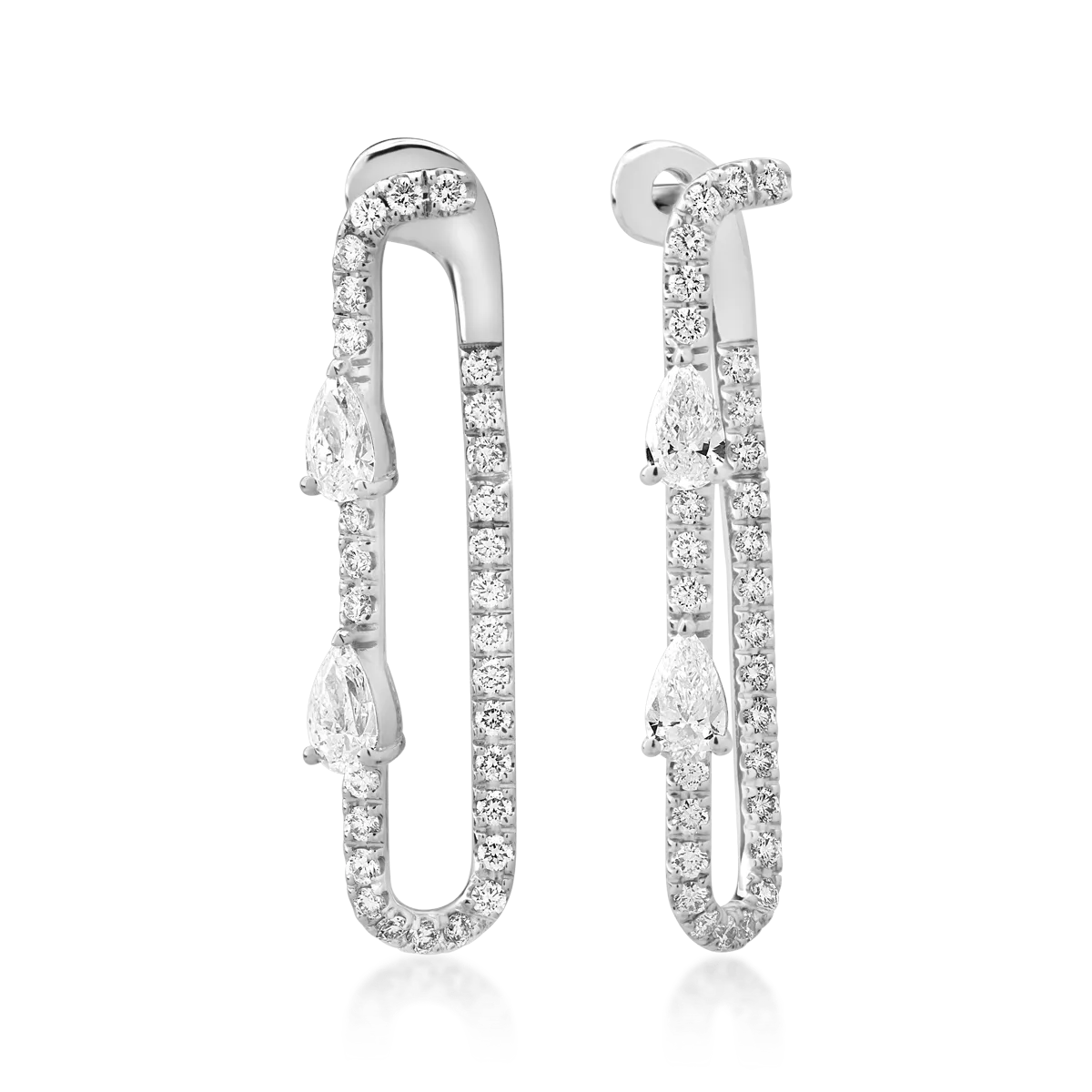 Cercei din aur alb cu diamante pear si round de 1.9ct