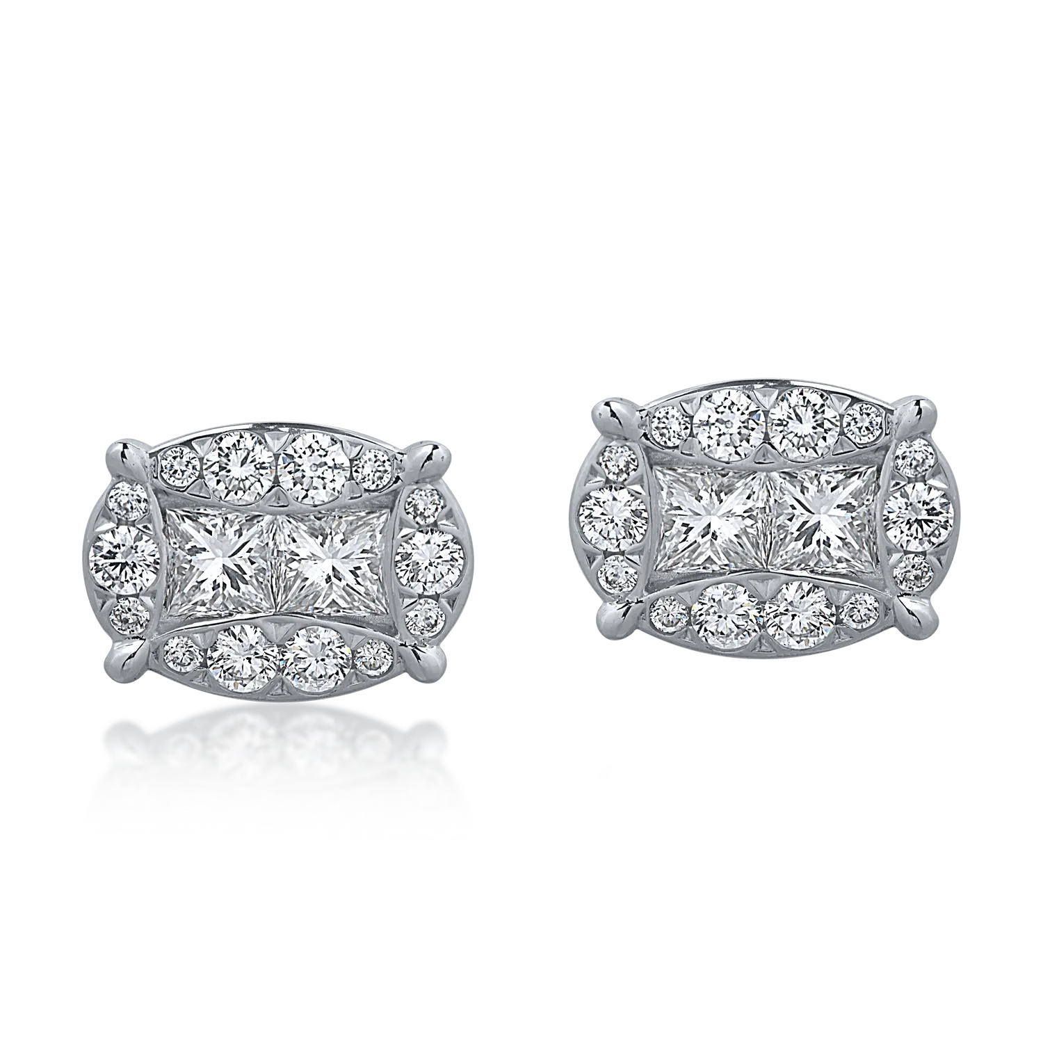 Cercei din aur alb cu diamante princess si rotunde de 0.56ct