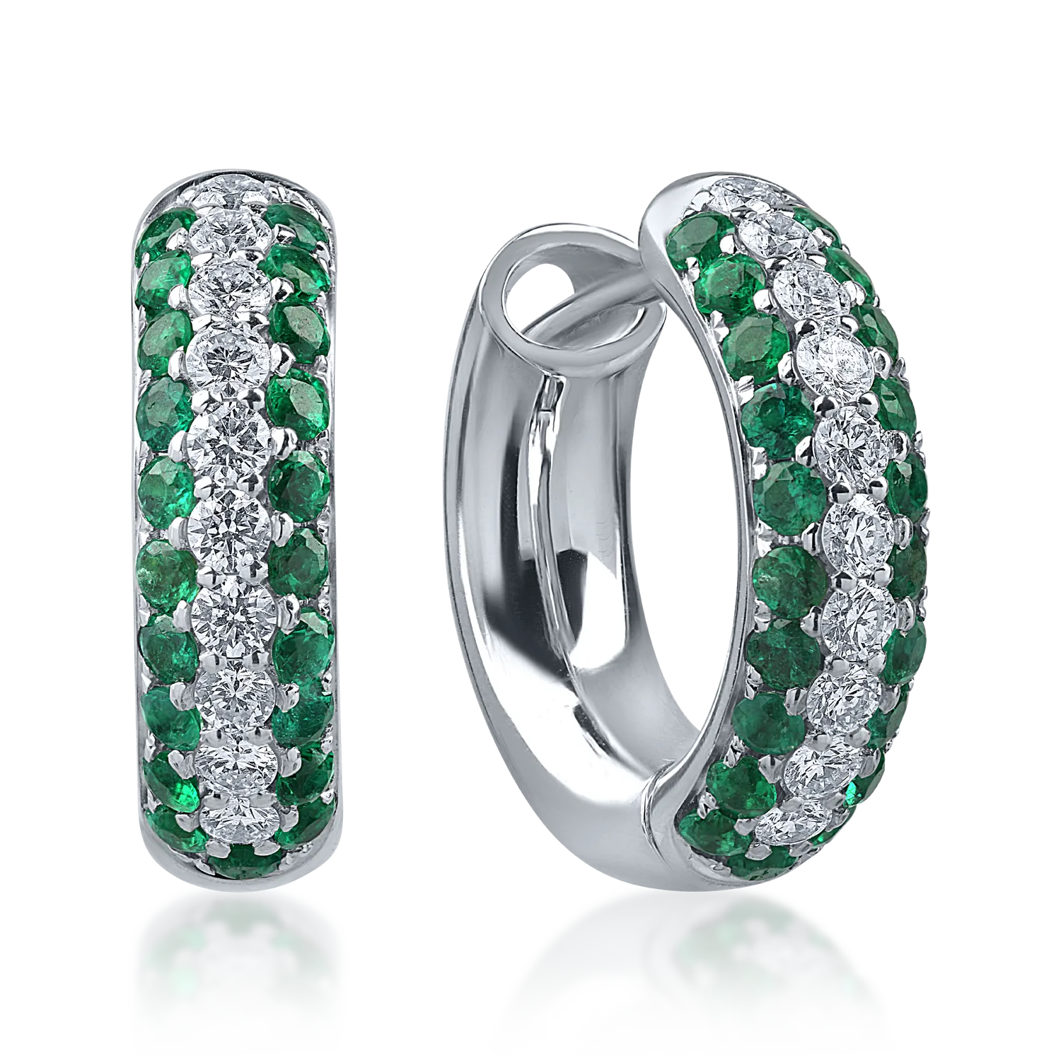 Cercei din aur alb cu diamante si smaralde de 1.22ct