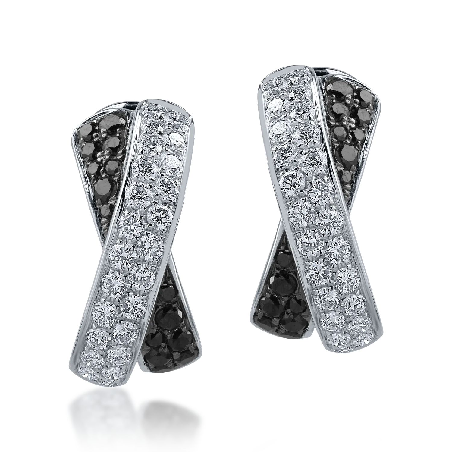 Cercei din aur alb cu diamante transparente de 0.78ct si diamante negre de 0.41ct